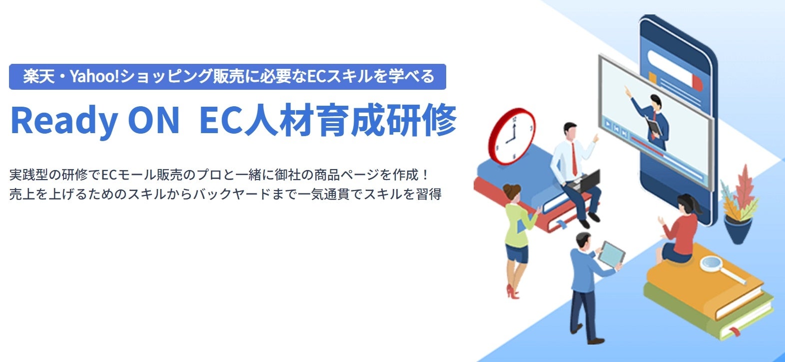 EC(ネット販売)事業に進出したい、または既にEC事業を展開している中小企業様向けのEC販売に必要なスキルを習得できるEC人材育成研修。e-ラーニングを活用したビデオコンテンツにより業務のスキマ時間に学習いただけます。また、経験豊富なECモール販売のプロが直接アドバイスするため、ノウハウの蓄積された商品ページの作成、進出初期から効率的なEC運営を行うことが可能。御社の商品を日本全国へ届けるためのお手伝いを致します。
