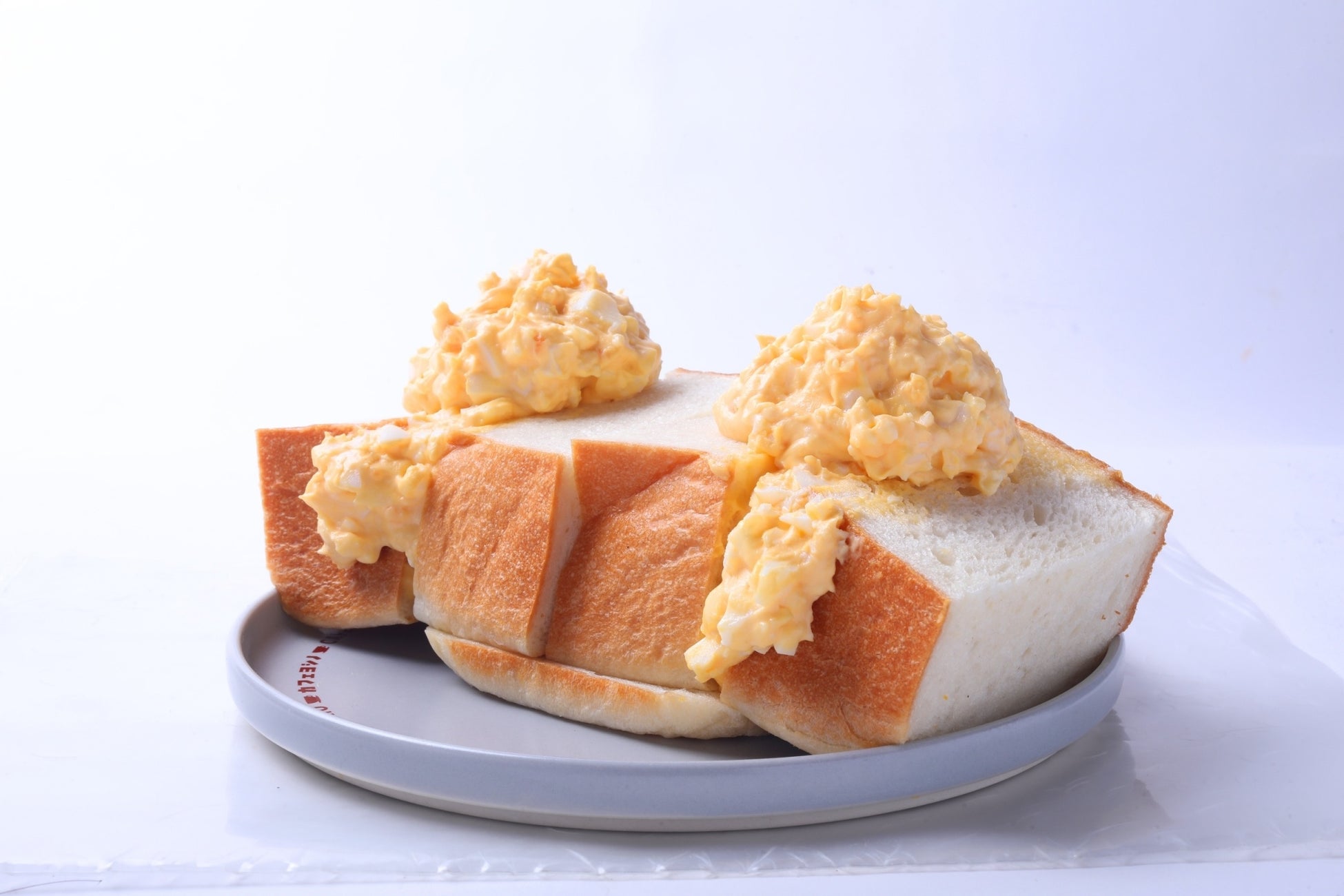 湯だねを使用し、自社工場で焼き上げたとろけるように柔らかくもちもちで耳まであっという間に食べられる生食パンに卵ペーストをたっぷり使用した、「デラ大きく、デラおいしい」喫茶店サンドです
