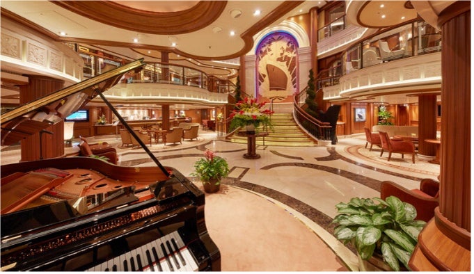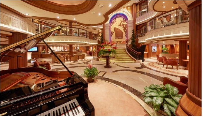 英国女王エリザベス2世に命名され2010年にデビューしたクイーン・エリザベスはこの名を受け継ぐ3代目の客船。英国王室と深い縁があり、グランド・ロビーには第2代スノードン伯爵による初代クイーン・エリザベスをモチーフにした寄木細工が、また、船内には女王の肖像画も飾られています。プライベート・ボックス席がある劇場も代表する施設のひとつです。船内へ一歩入ればそこはまさに英国。毎日午後に提供されるアフタヌーン・ティーや、キュナードオリジナルのビールやジン、イングリッシュ・ブレックファストなど、英国ならではのグルメも多くご用意しております。アールデコを基調としたエレガントな空間で、非日常をお楽しみいただける客船です。