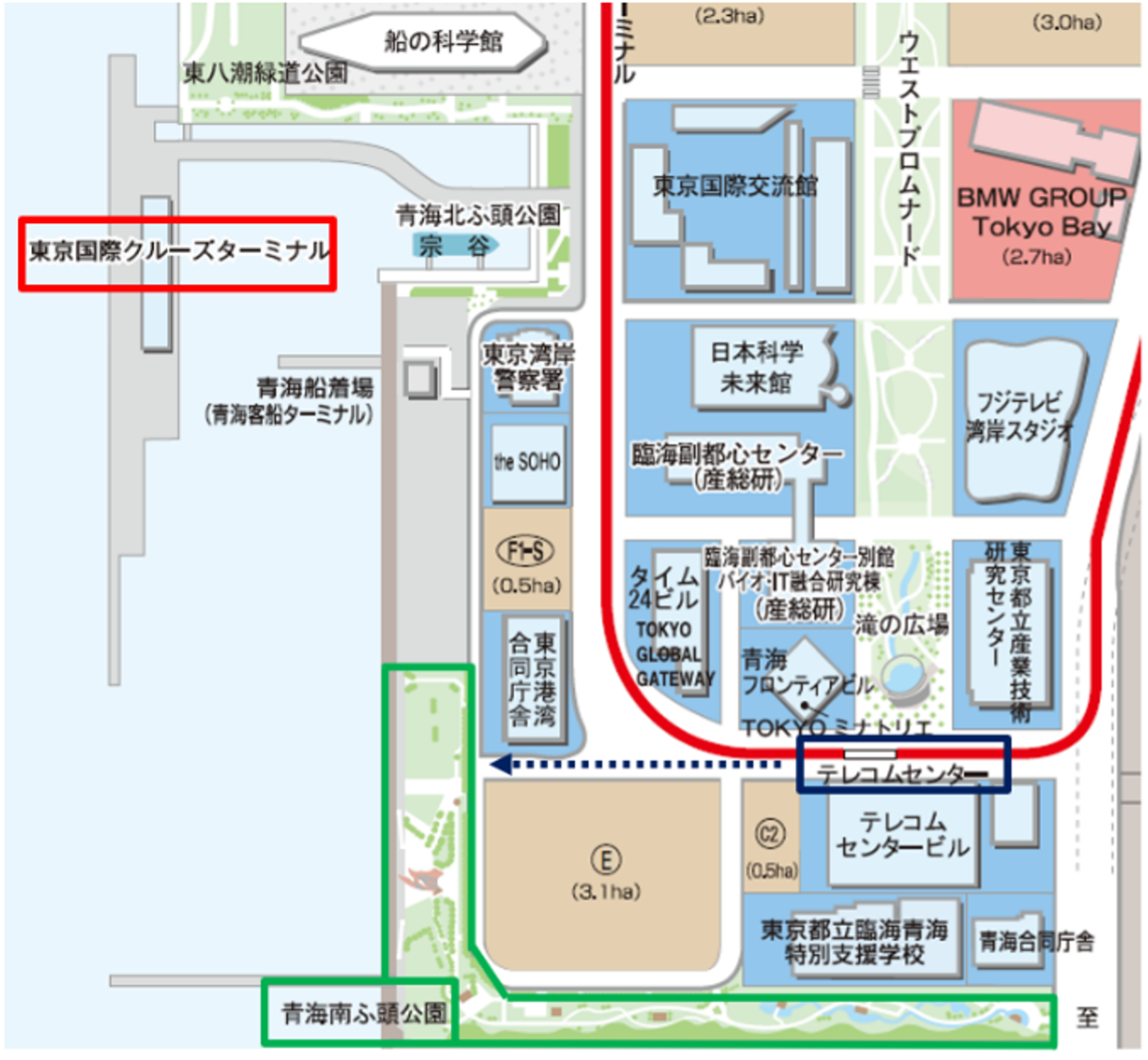 ・ゆりかもめ「テレコムセンター駅」下車 徒歩4分