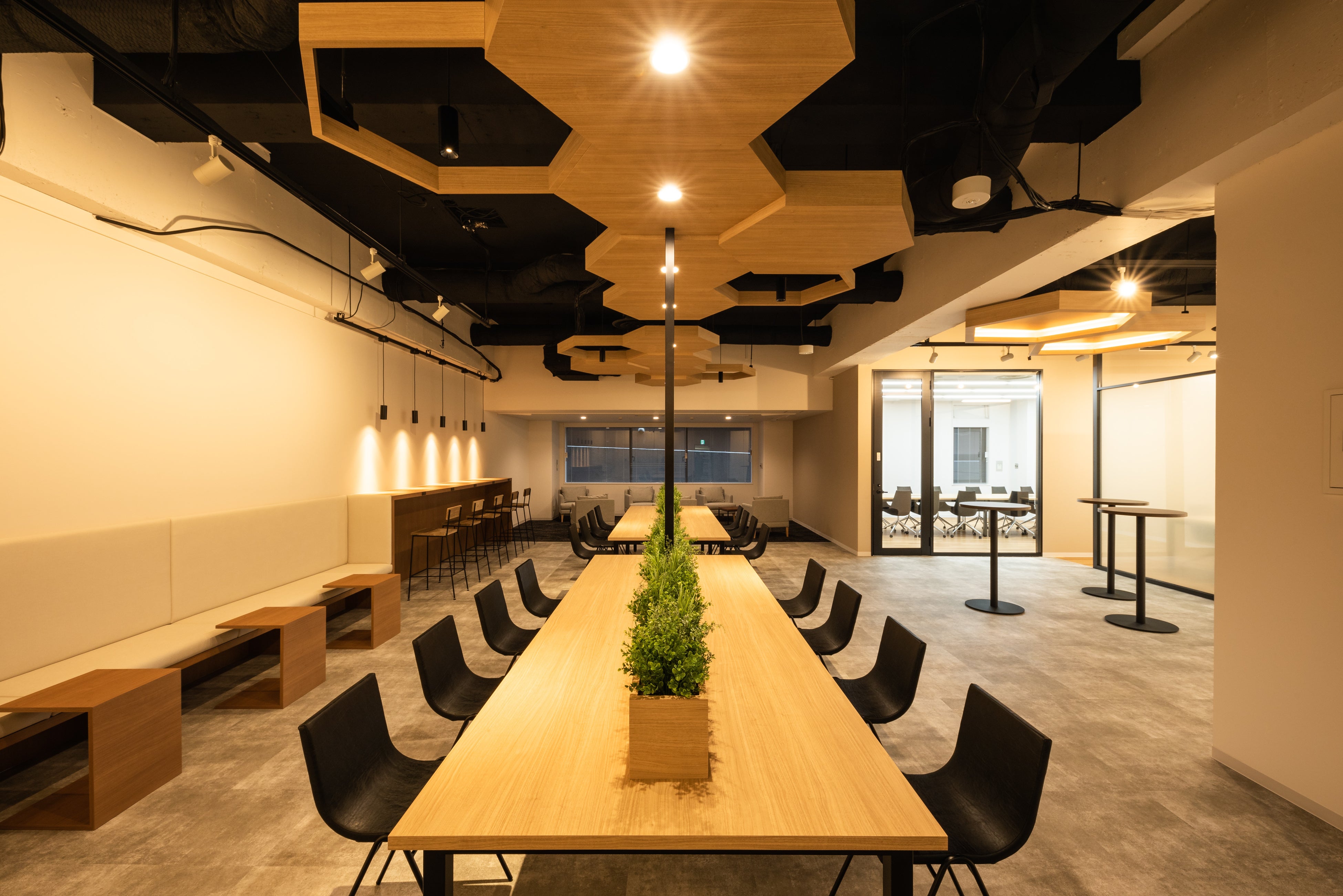 1Fに共用ラウンジや貸会議室を設け、快適に働ける環境を提供します。