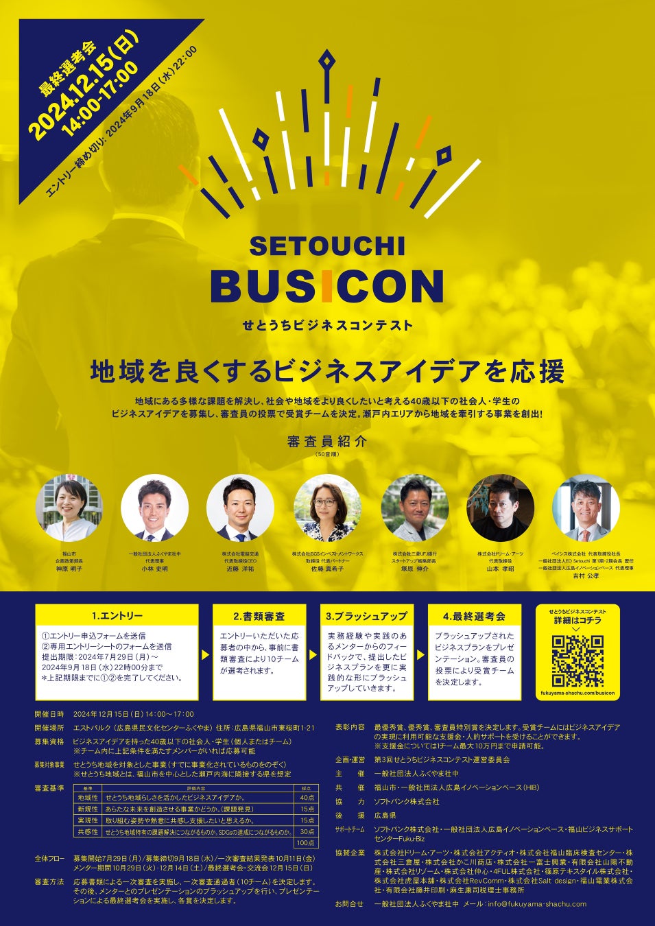 このコンテストを通じて、私たちは単にビジネスプランを競うだけでなく、せとうち地域の未来を共に考え、創造していく機会を提供しています。皆様の斬新なアイデアと情熱が、このせとうち地域をより豊かで魅力的な場所へと変えていく原動力となります。