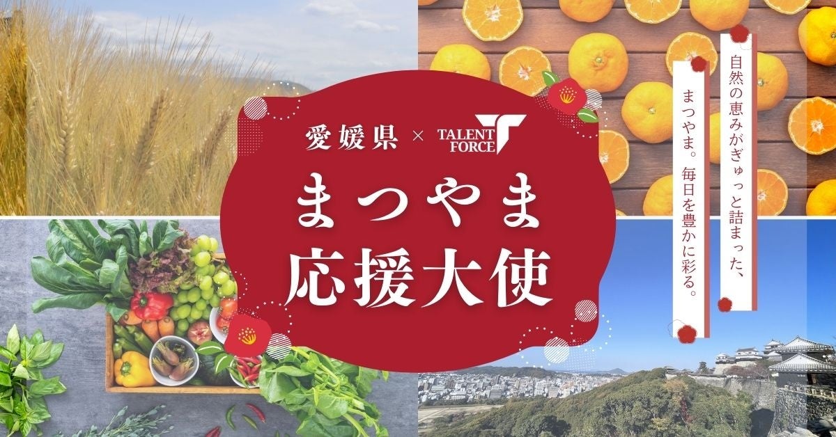タレントフォース株式会社代表取締役の細川はこの度、愛媛県松山市の「まつやま応援大使」に就任。 松山市の魅力を発信し、旅行先・移住先としての興味喚起・啓蒙活動を行う。