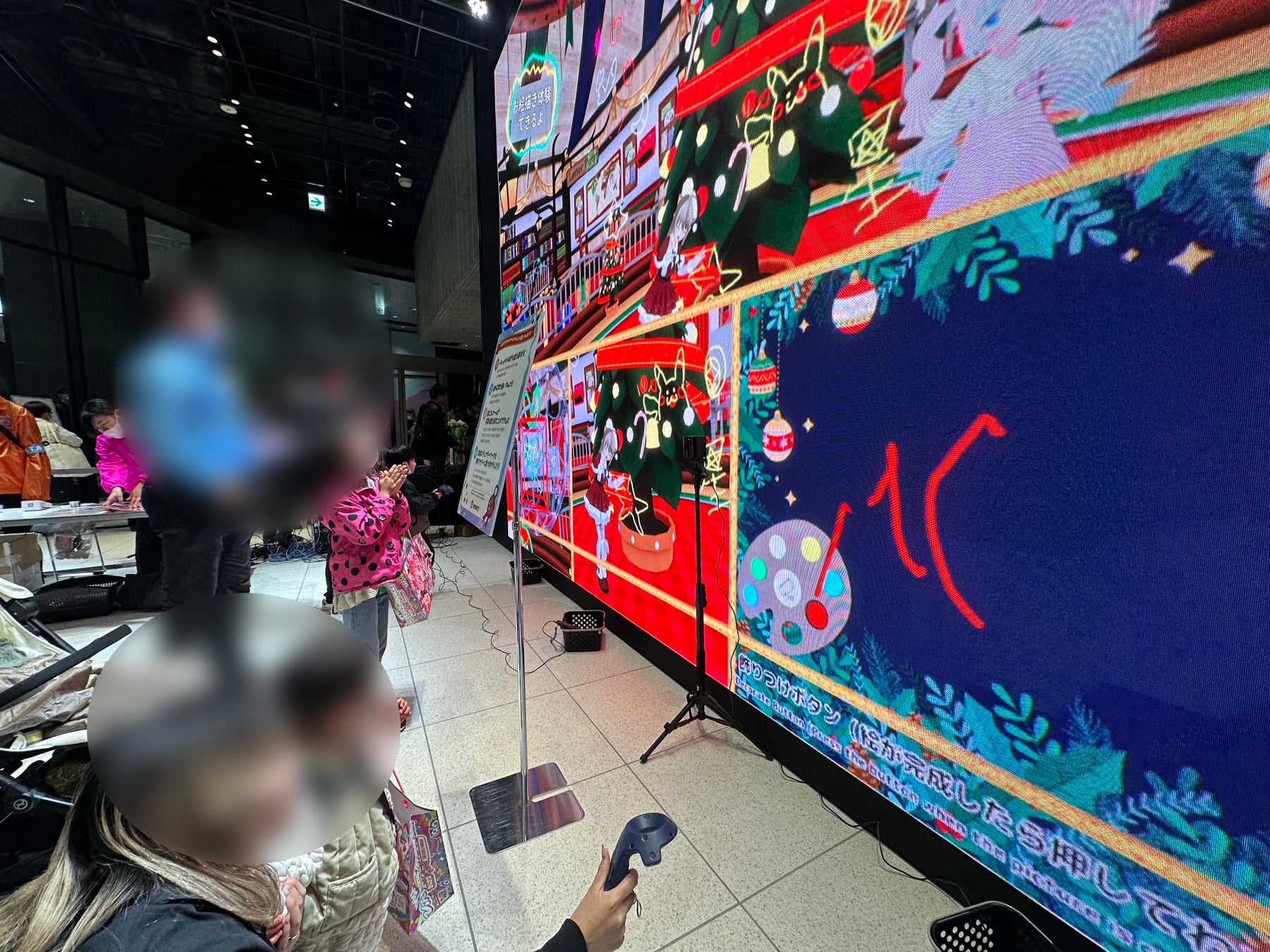 AvatarMeetsは、現実とバーチャルをシームレスに繋ぐ画期的なコンテンツです。 現実にいる人はヘッドセットなどを被ることなく、バーチャルのユーザーとアバターを介して交流することが可能です。 また、別会場にあるAvatarMeetsの会場とも連携しており、アバターの動きや声だけでなく、タブレットで描いたイラストや文字を使ってもコミュニケーションができます。 手を挙げるとアイテムやおもちゃが出てきて、よりインタラクティブな交流体験が可能なコンテンツになっています。