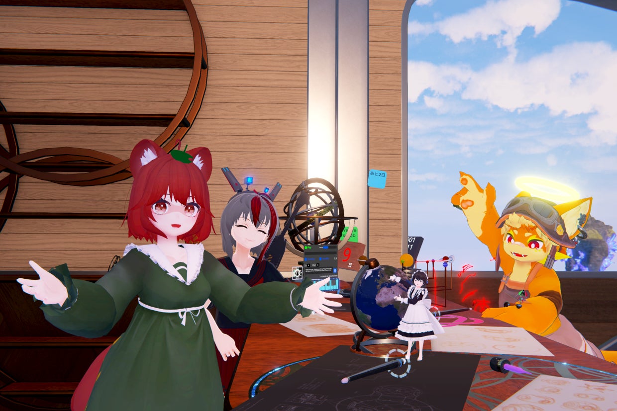クリエイターミーツは、HIKKY社の発案と構想に対し、提案、協力、設計を担当いたしました。この画期的なコンテンツでは、現実世界とVR空間の参加者が協力して一つの空間を共同で構築していきます。現実側の参加者は、ワールドに飾り付けるスケッチを描きます。描かれたスケッチはリアルタイムでVR空間に反映され、VR側のユーザーが、位置を調整したりして飾り付けを行います。このリアルタイムのスケッチ共有により、現実側とVR側のユーザーが一体となって空間を作り上げる魅力的な体験が可能となります。