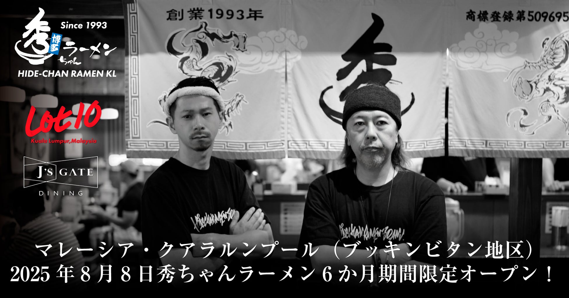 マレーシア初出店!クアラルンプールLOT10・J'S GATE DININGに「秀ちゃんラーメン」6ヶ月期間限定オープン!
