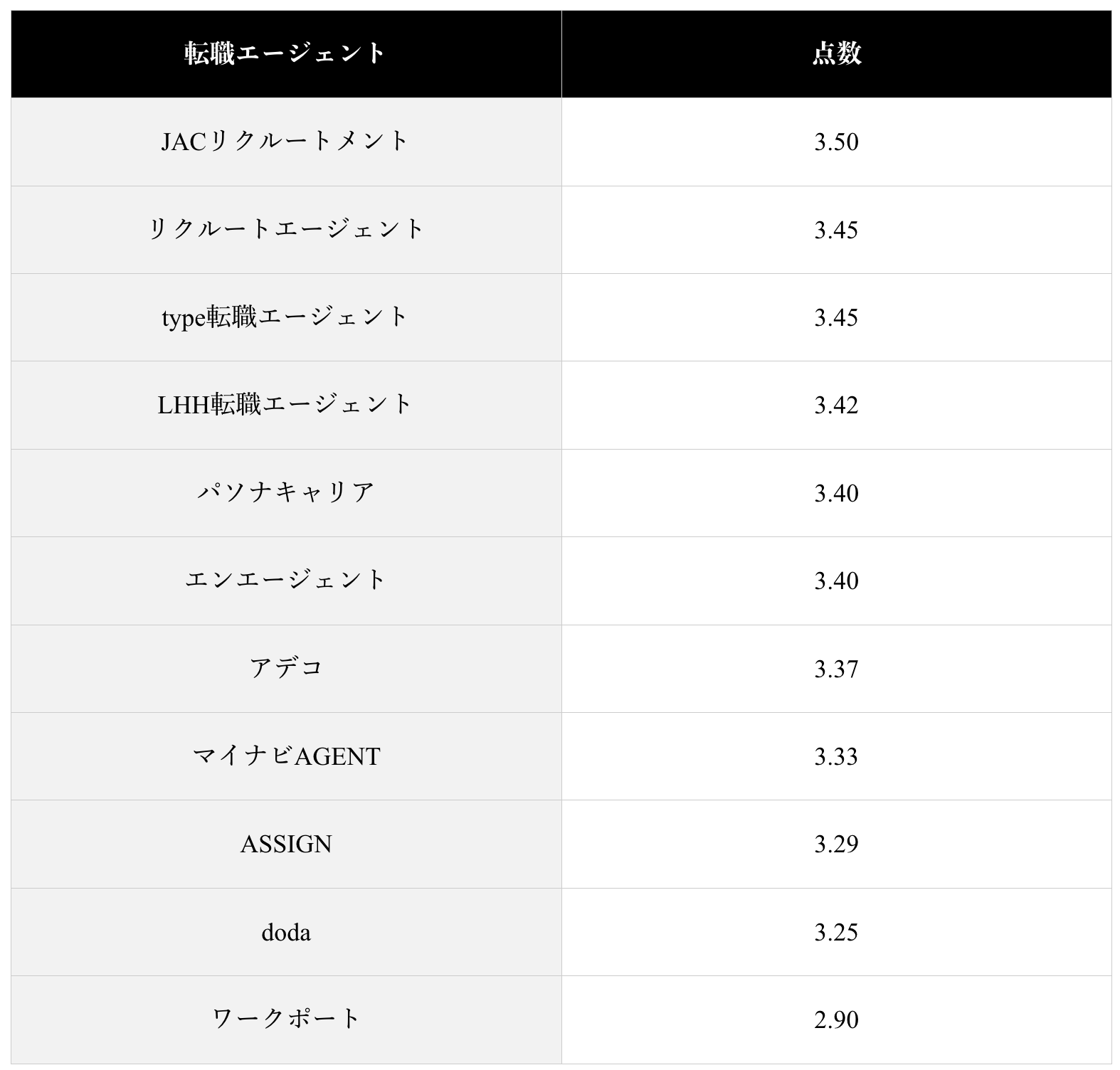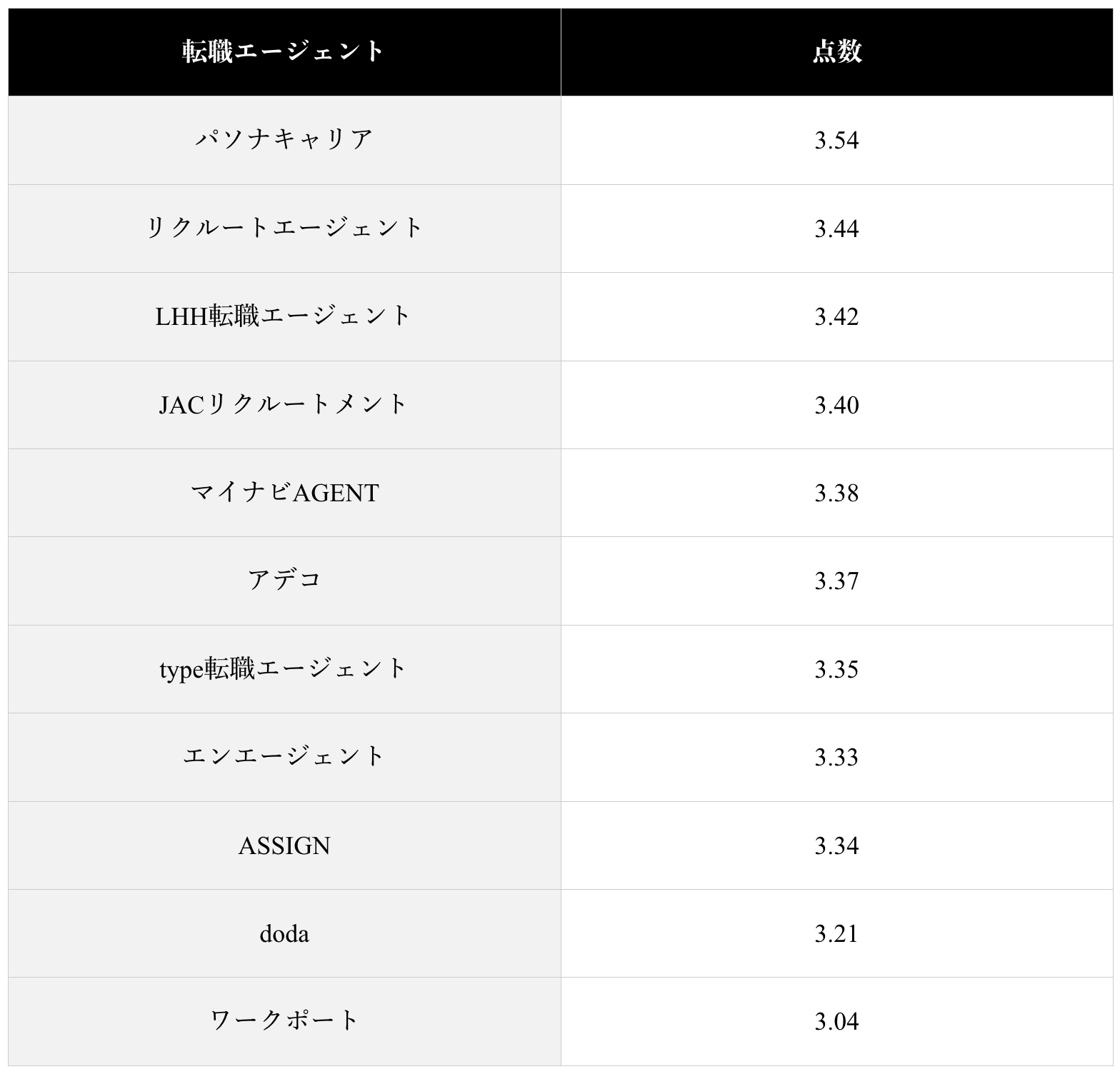 エージェントの質で最も高い評価を得たのは、リクルートエージェントでした。