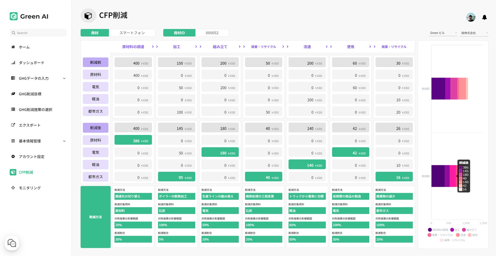 脱炭素計画策定システム『Green AI』に排出量モニタリング機能/CFP削減機能を追加