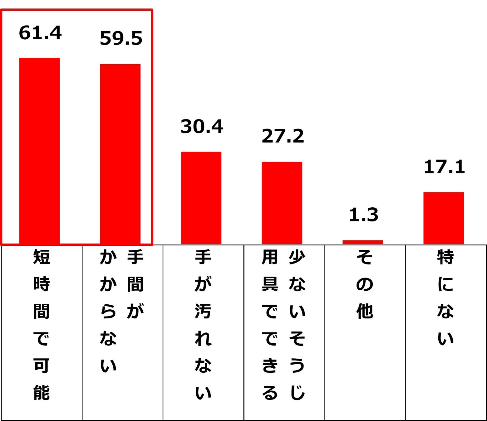 大そうじ未実施者に対して、大そうじに前向きになるためのポイントを伺ったところ、「短時間でできる」が最も多く67.4%。次いで、「手間がかからない」(59.5%)、「少ないそうじ用具でできる」(30.4%)という結果に。短時間化で、未実施者の多くが大そうじに前向きに取り組める兆しがあることが明らかになりました。
