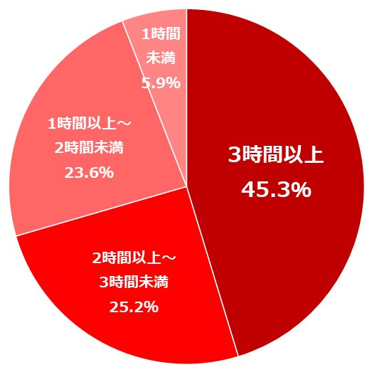 (4)大そうじ実施者の平均所要時間は、4割強(45.3%)の方が、「3時間以上」もかかっていることが判明。