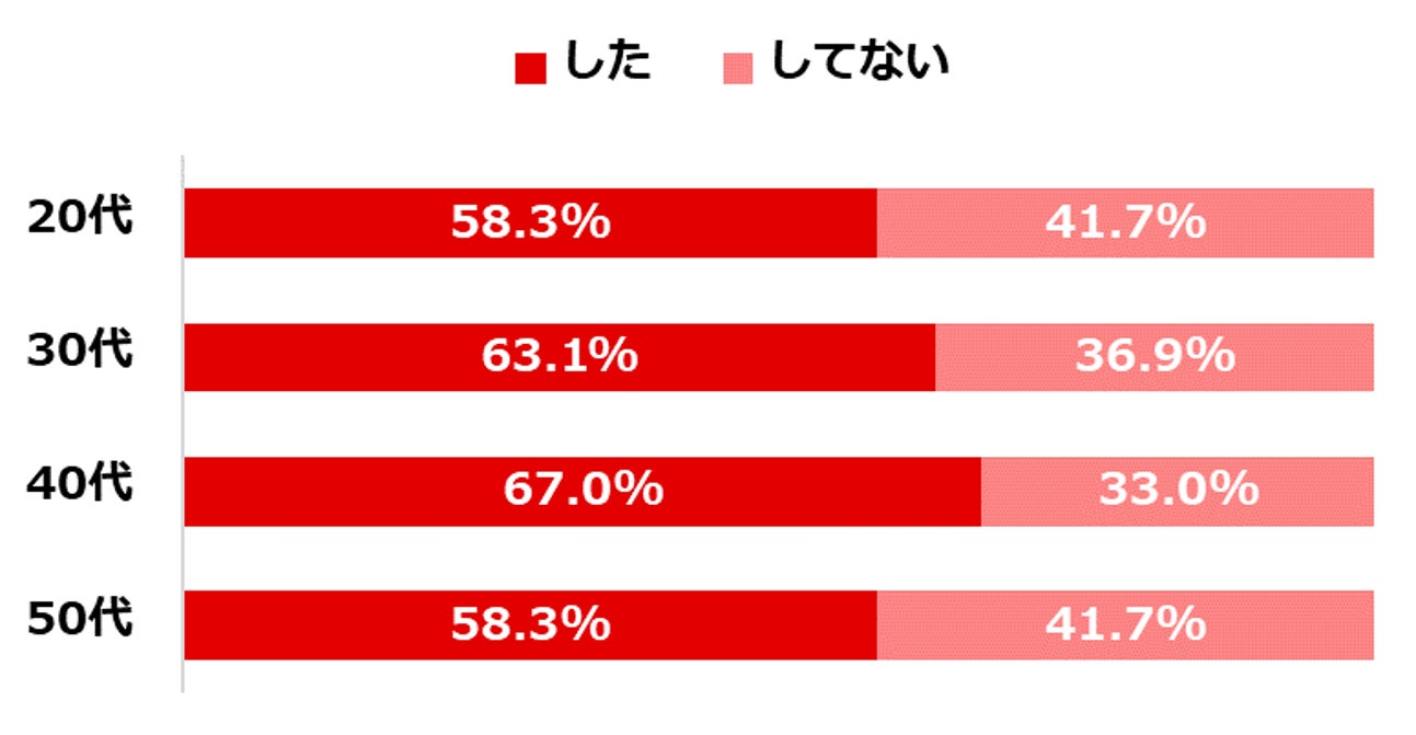 2023年に大そうじをしたかどうか聞くと61.7%が「した」と回答したものの、約4割の38.3%が「しなかった」と回答。特に、20、50代の「していない」の回答がそれぞれ41.7%と高い数値となりました。