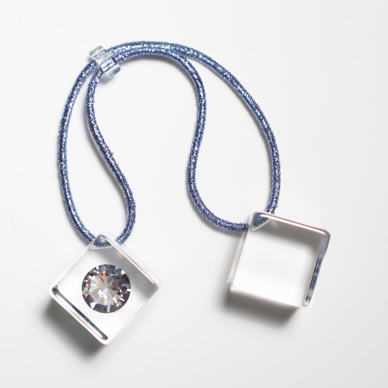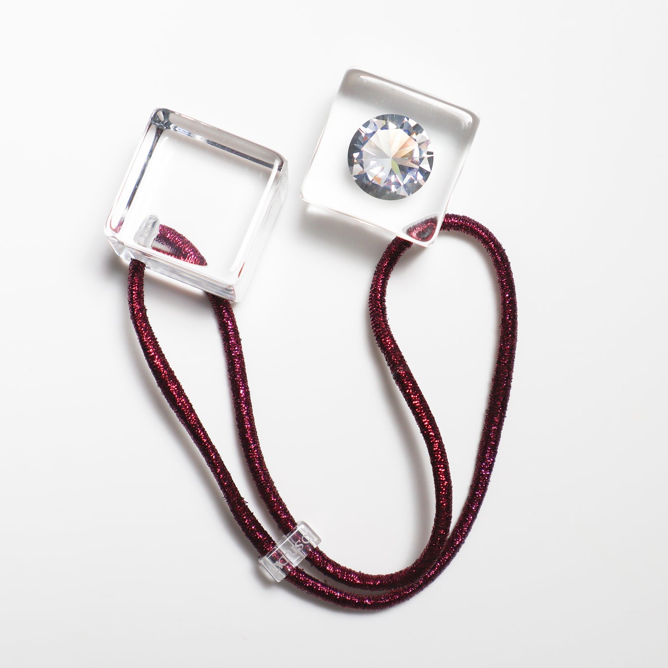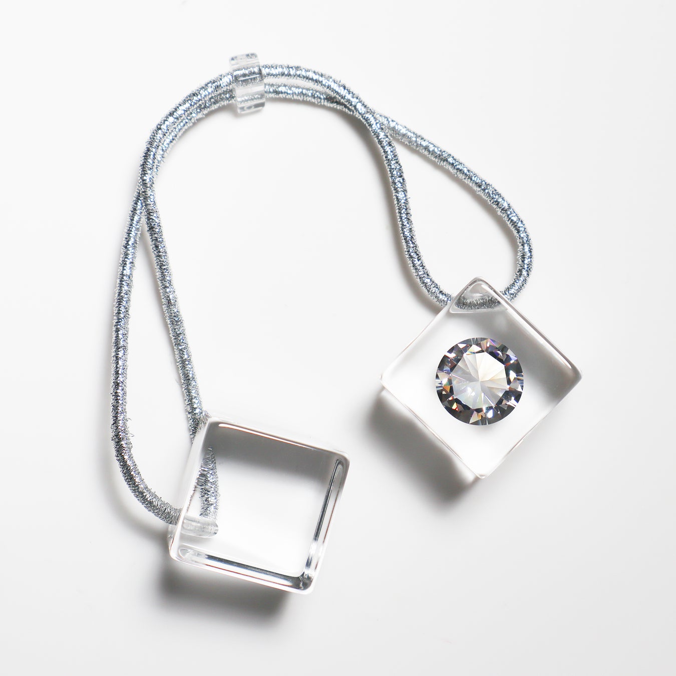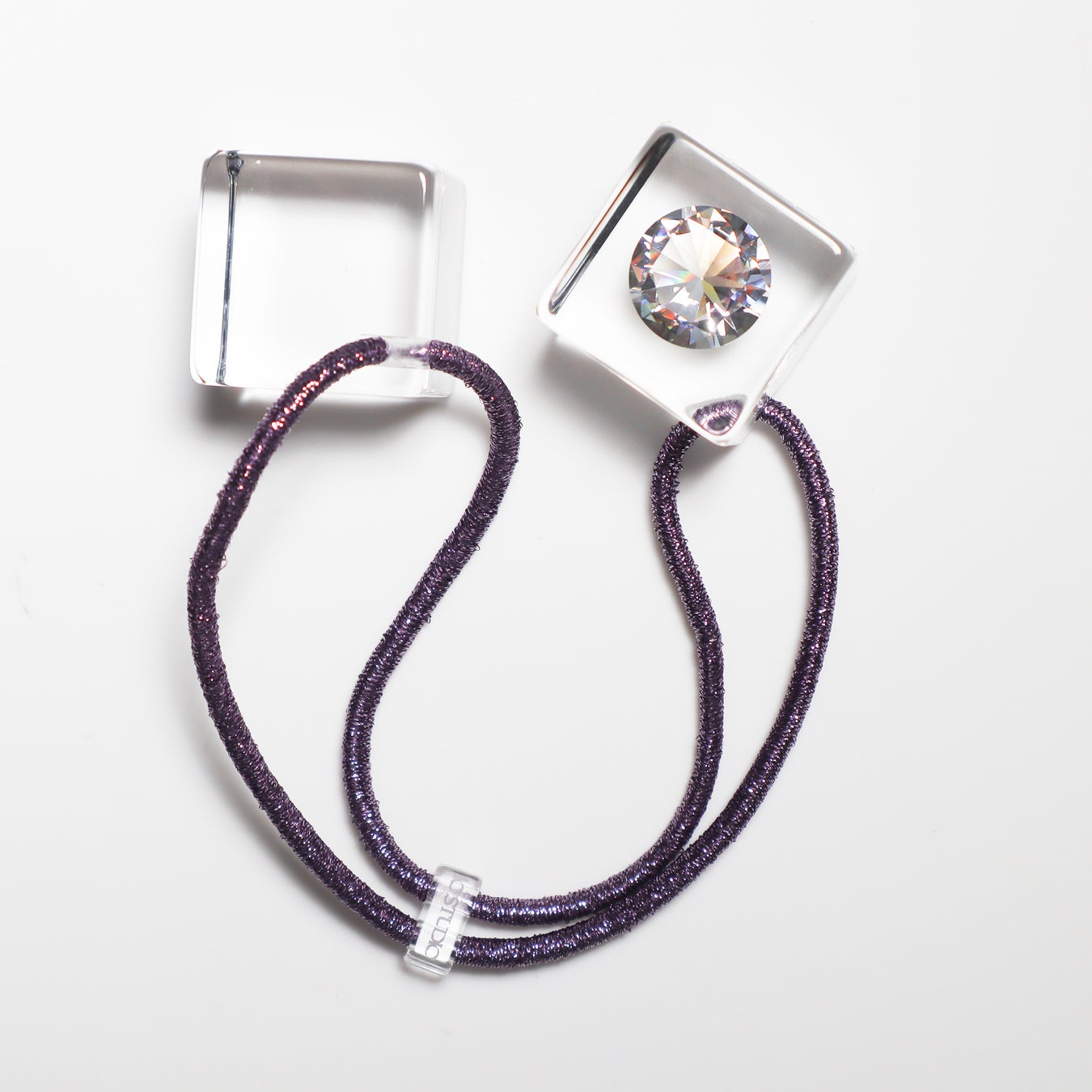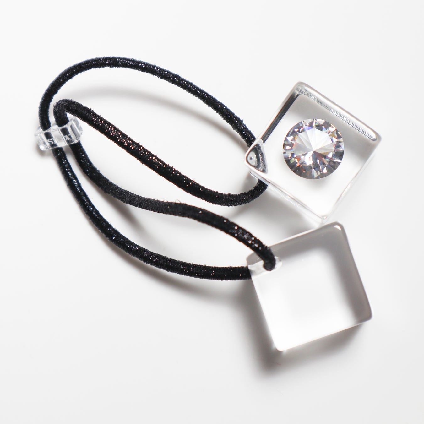 アクリルに封入された14mmの大きなジルコニアが輝く、華やかなヘアポニー。