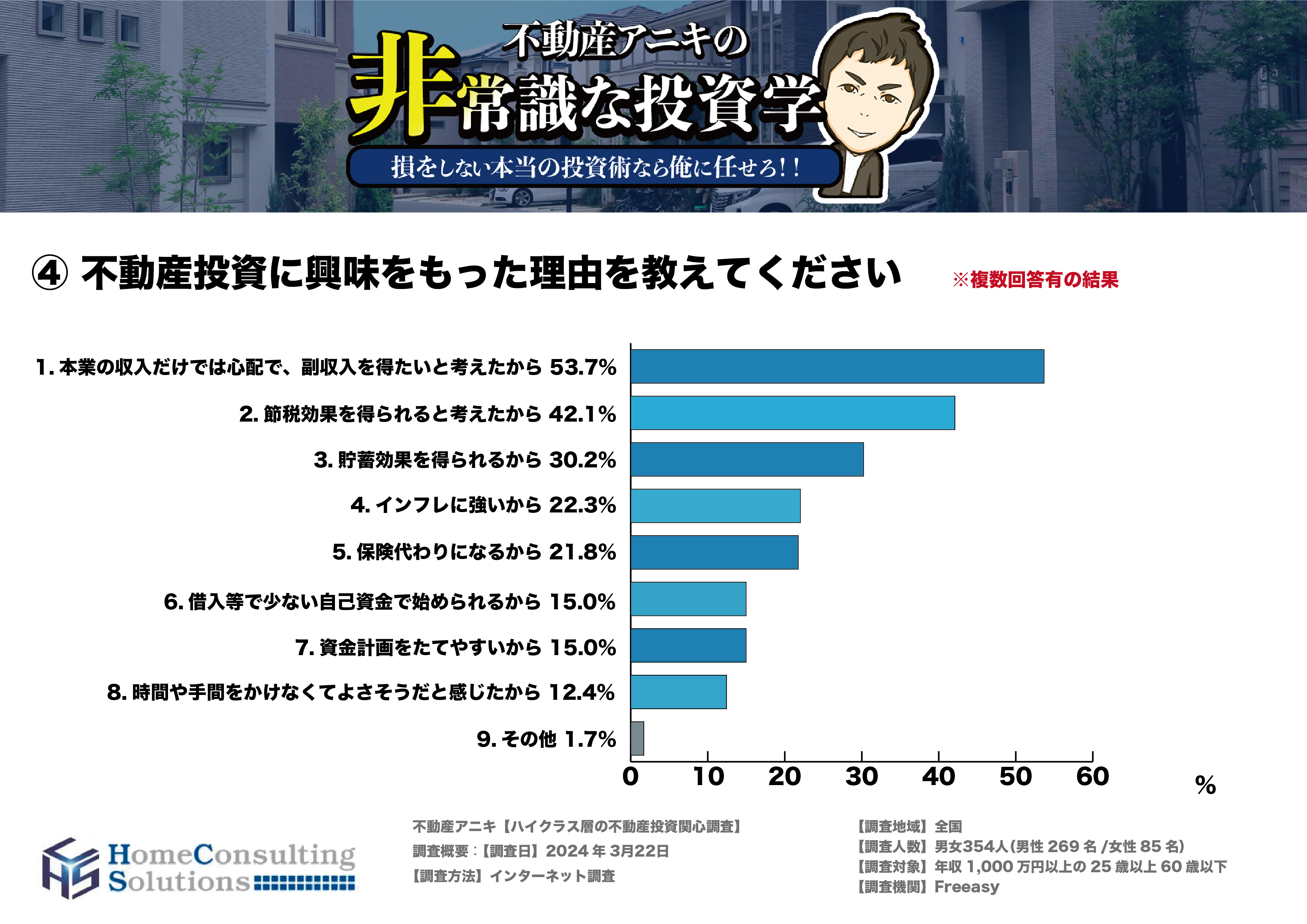 不動産アニキの小林大祐が『ハイクラス層354名に不動産投資関心調査』を実施。