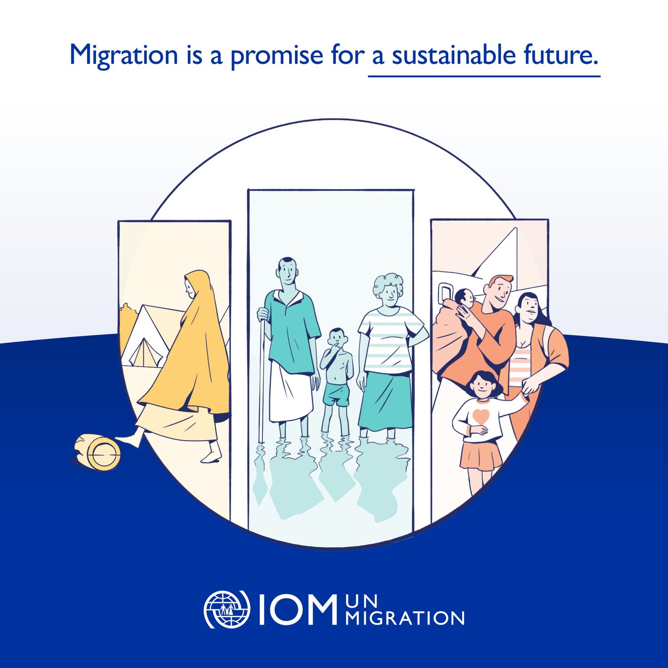 移住は、世界の発展と繁栄の礎である。2億8,100万人の国際移民は、世界のGDPの9.4%を生み出している。IOMは、気候変動への適応強化、人権保護、労働市場におけるニーズへの対応、各国政府の移住管理支援などの活動を円滑にするために、政策や課題ごとのイニシアチブに重点を置く。