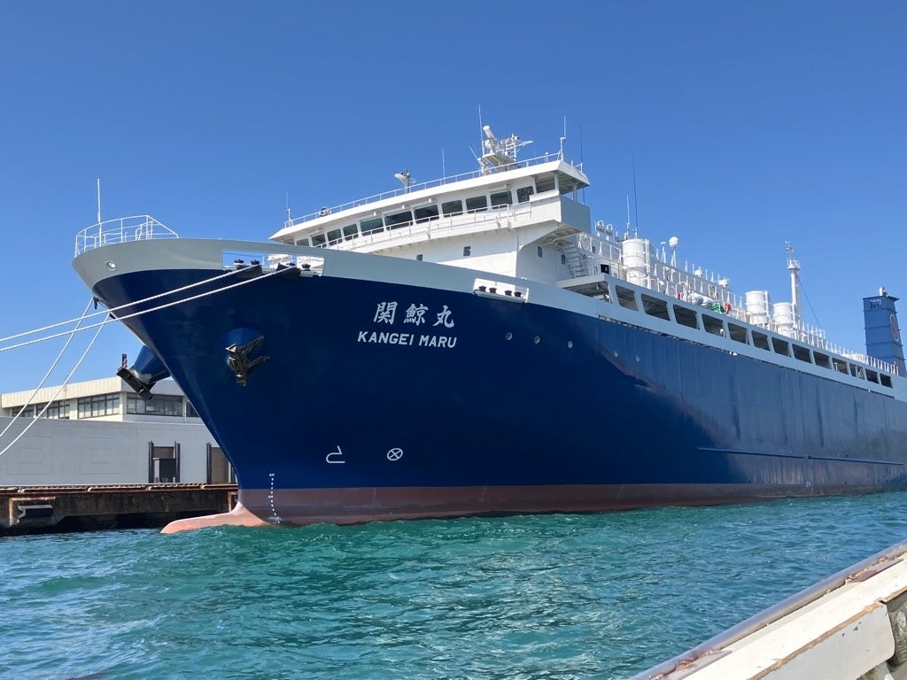 国産の捕鯨母船として73年ぶりに新造した捕鯨母船「関鯨丸(かんげいまる)」。