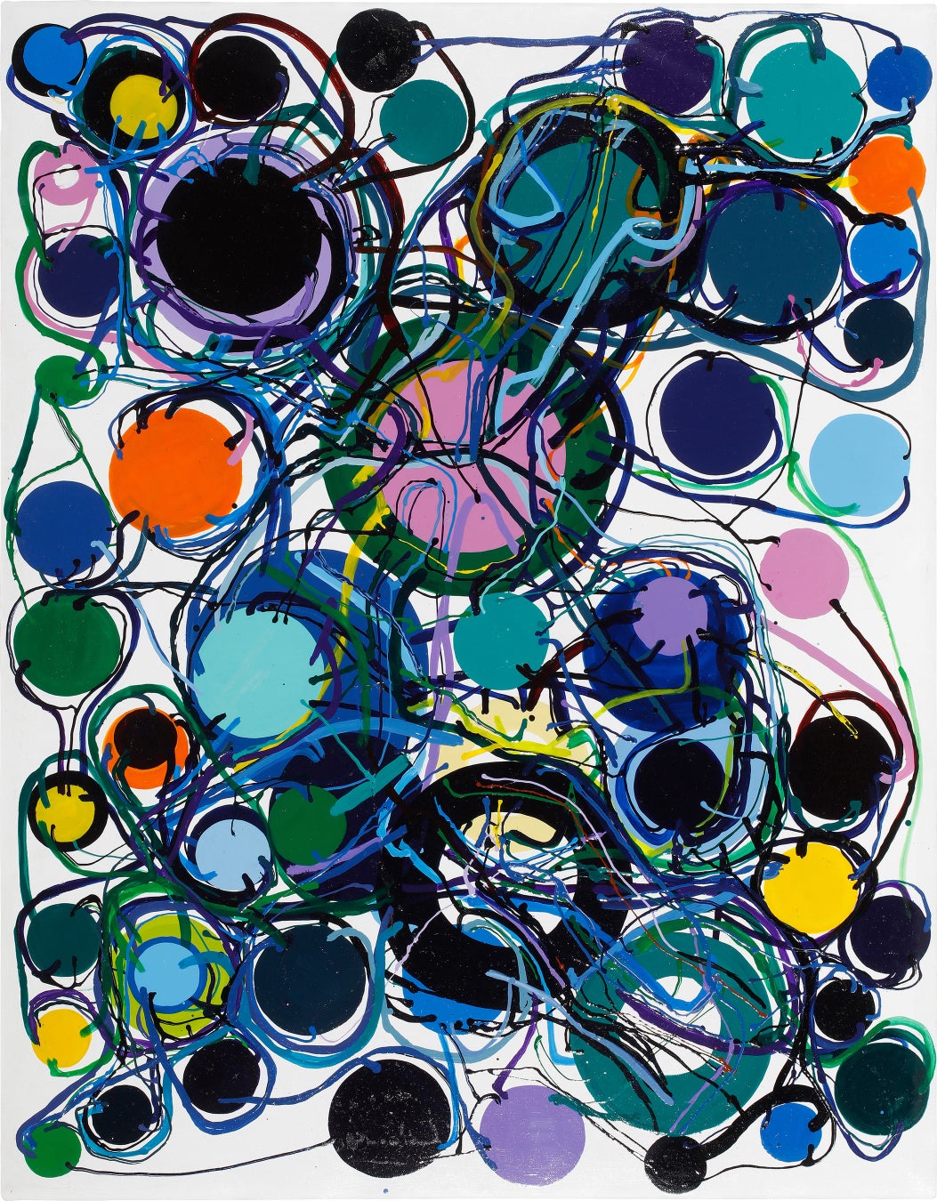 1954年に結成された「具体」グループ、正式名称は「具体美術協会」は、戦後日本初の先鋭的な美術運動であり、革新的で実験的な美術制作へのアプローチで知られています。今季のデイセールでは、具体派の著名なアーティストである白髪一雄、田中敦子、元永定正、前川強を含む作品を出品します。彼らはしばしば、芸術の物質性を重視し、これによって新しい芸術の道を発見し、芸術表現の可能性を拡大しました。具体の中心的メンバーであり、グループの最前線に立つ女性メンバーである田中敦子は、その先鋭的な作品で、「具体」の矛盾に満ちた、ほとんど自己破壊的な唯美主義的美学を鮮やかに表現し、多大な貢献を果たしました。《88D》は、円形の形と不規則な線が有機的に絡み合った構図で、パフォーマンス中に回転する電気回路が生み出すまばゆい光の線を捉えるかのような緊張感を表しています。