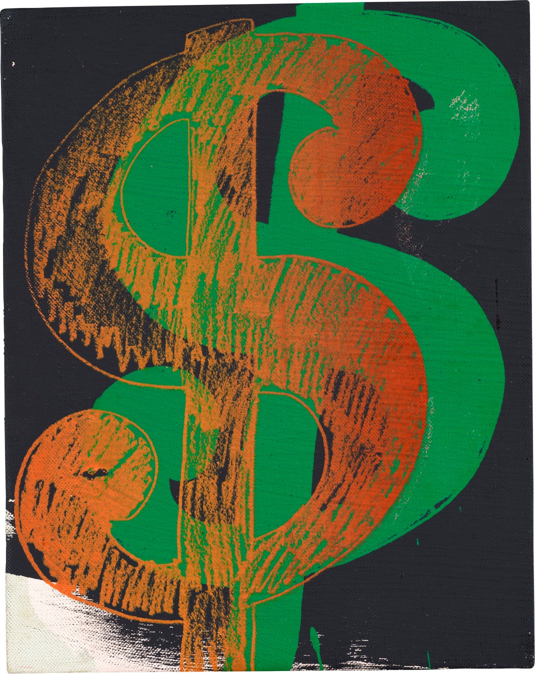 アンディ・ウォーホルのキャリアの重要な時期に制作された《Dollar Sign》は、デイセールの注目作品で、アーティストのアイコニックなシリーズからの一作です。1981年に制作されたこの作品は、アーティストから現在の所有者に贈られたもので、今回初めてオークションに出品されます。ウォーホルの生涯にわたる商品文化への関心を反映した作品は、どこにでもある「$」のモチーフを用いることで、芸術と富の切っても切れない関係を表現しています。