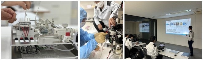 半導体製造装置を使った研修の様子 研修センターで座学研修を受ける様子