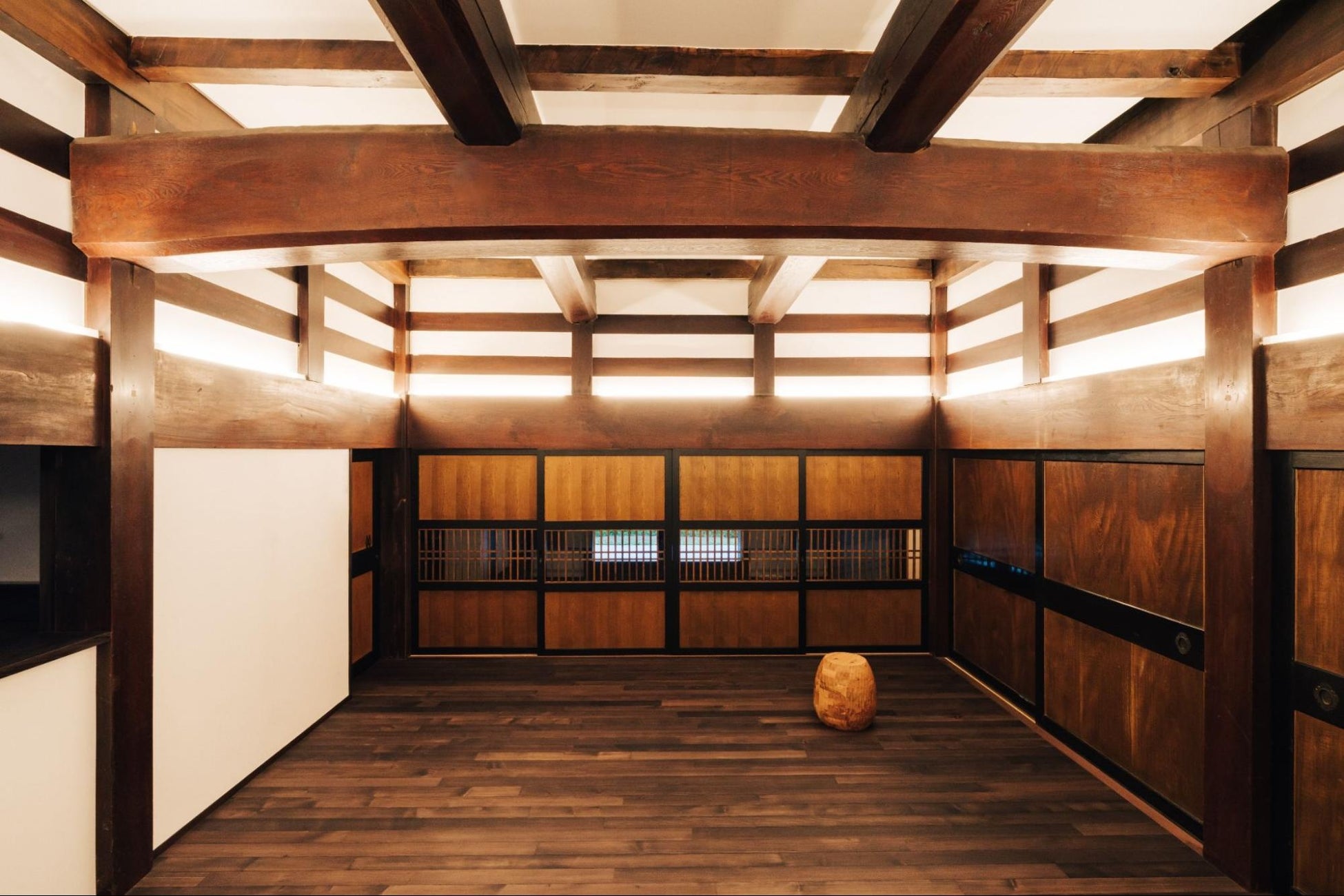 ヒロマは大雪に耐える太い梁と大黒柱を金物を使用せずに組み上げられています。現代では同じ材料での再現が困難なことから、稀少なものとされています。