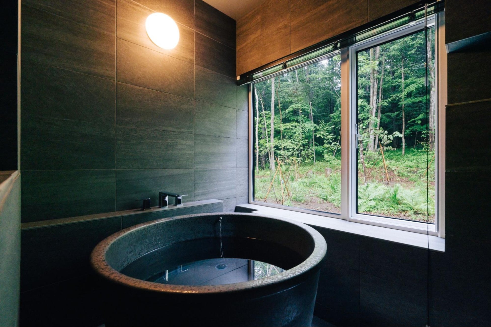 宿泊のお客様は、夜には月や星の明かりを感じながら、五右衛門風呂をイメージした陶器のお風呂で癒しのひとときを過ごすことができます。