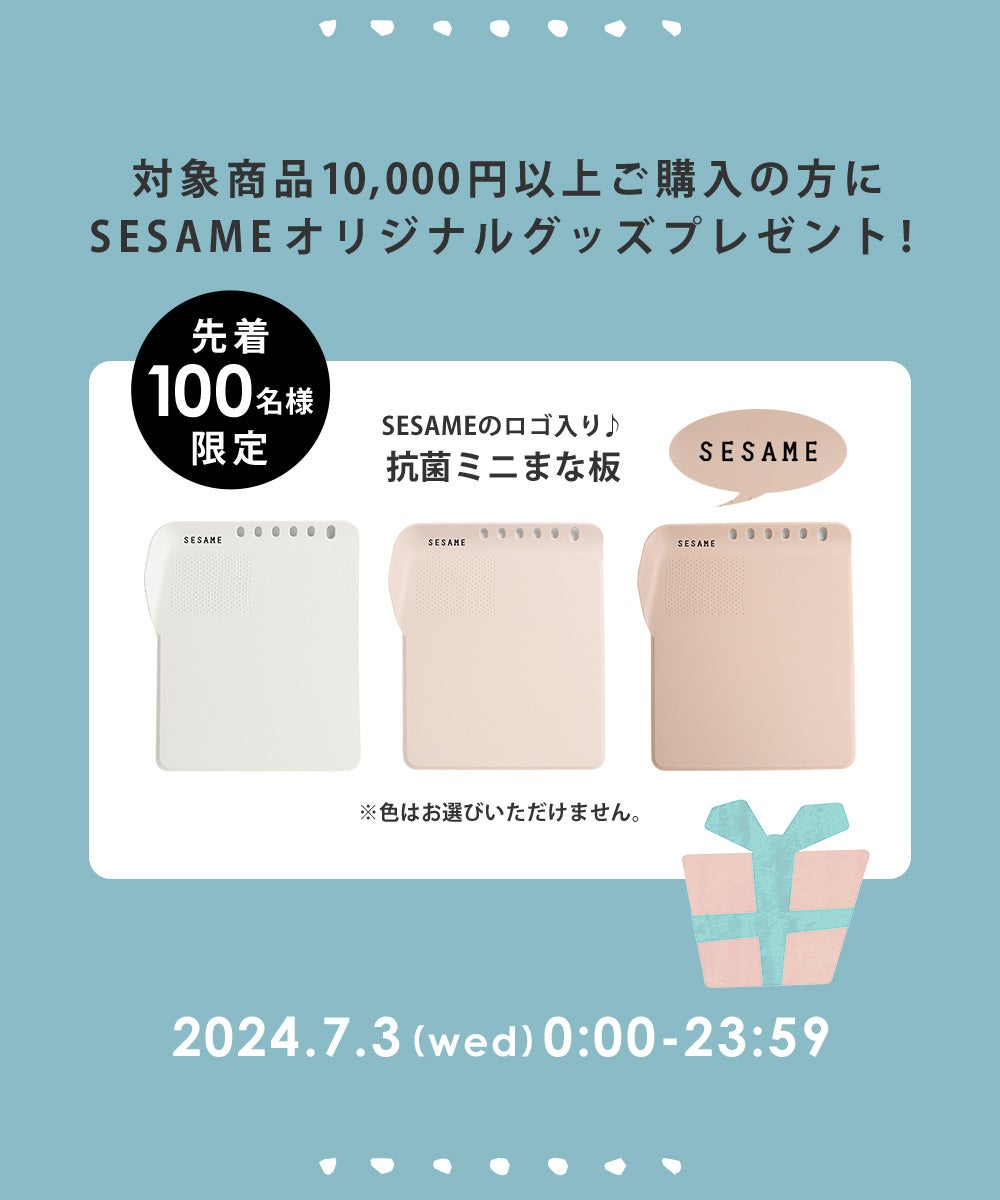 キャンペーン① 先着100名様にSESAMEロゴ入りオリジナル「抗菌ミニまな板」をプレゼント!