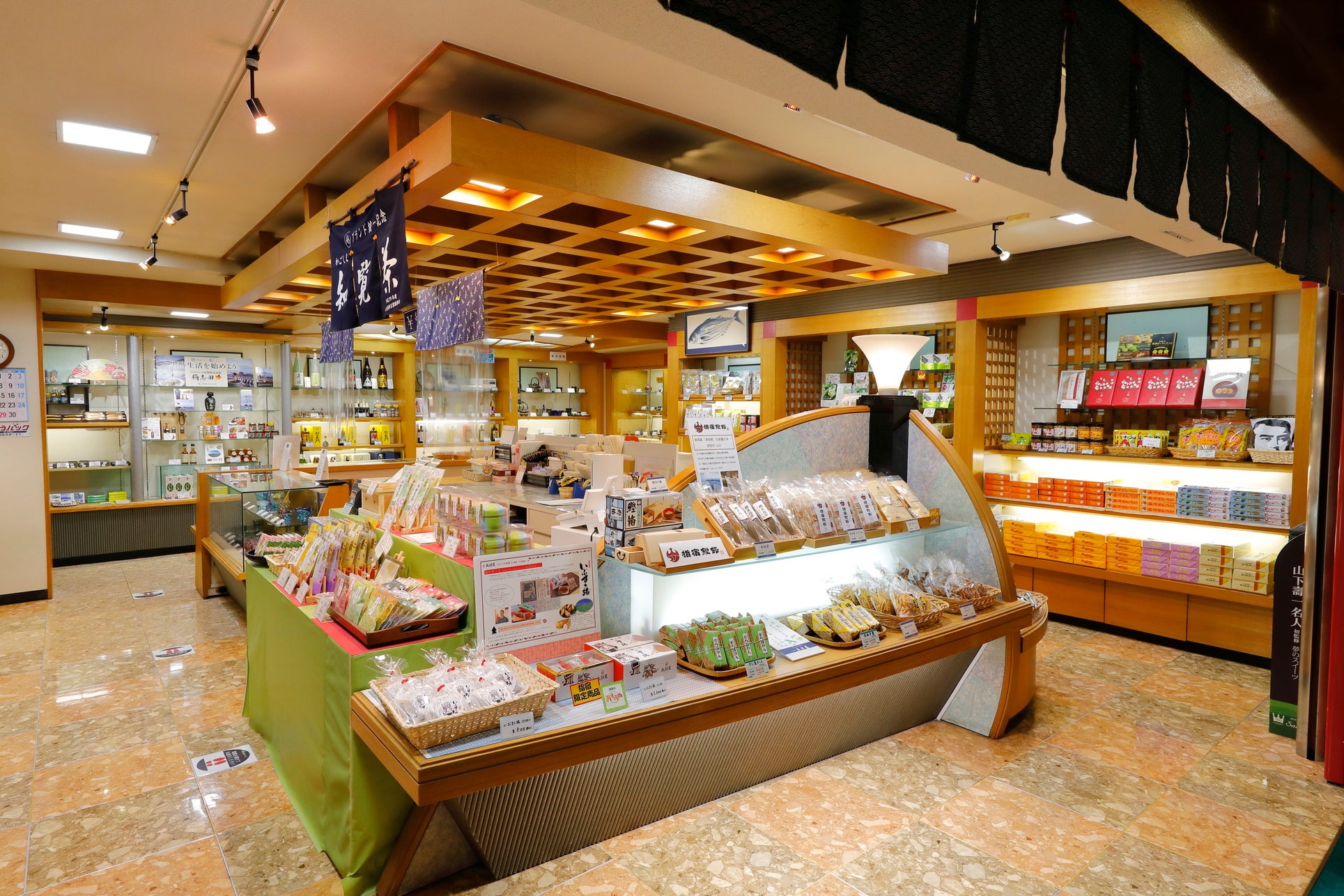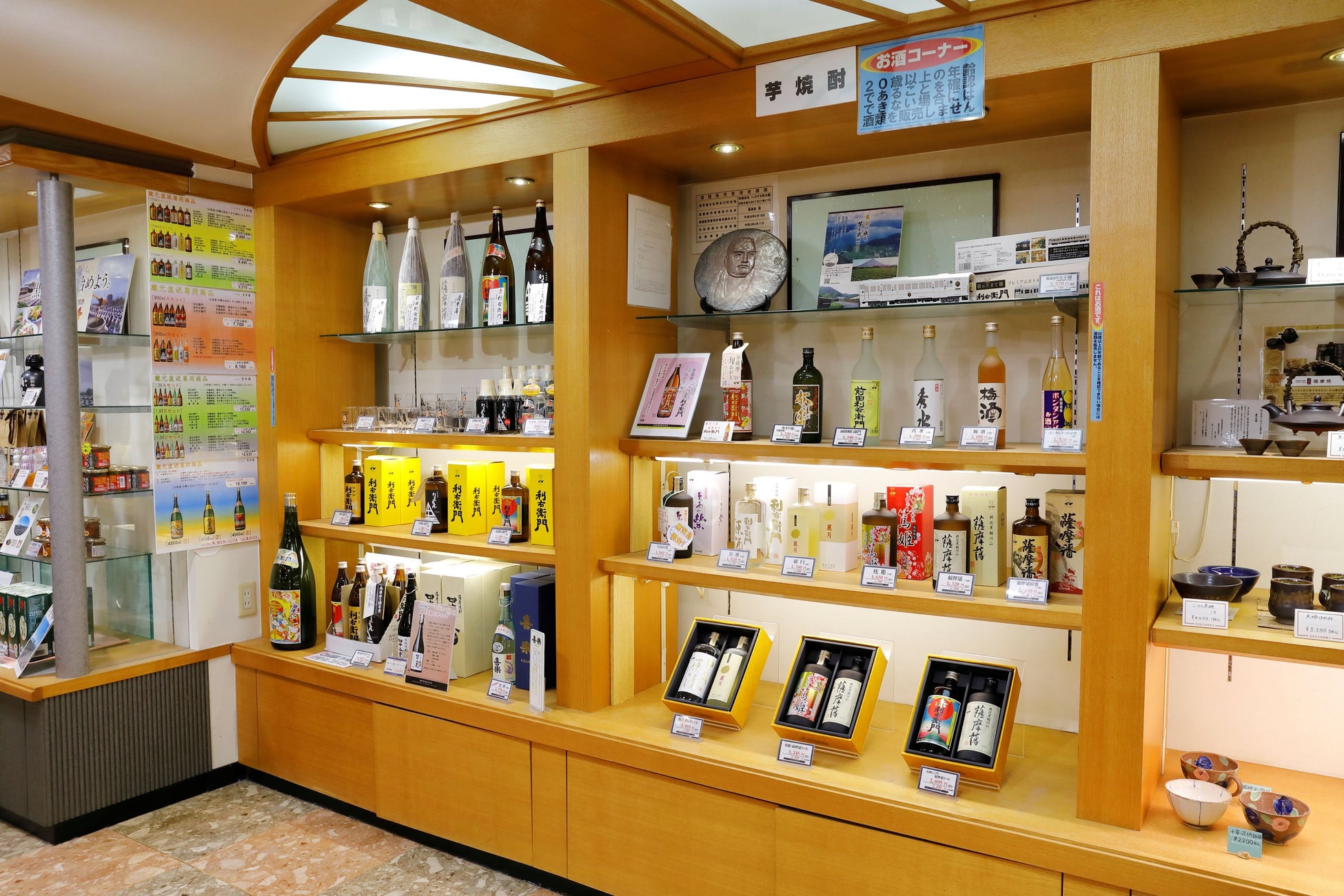 『売店』館内売店には指宿名産のお菓子、ふりかけ、焼酎、薩摩鍚器、薩摩切子、さつま揚げなど多種品ぞろえしております。