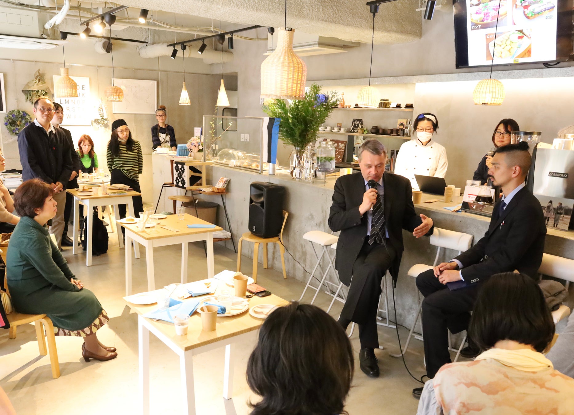 NORDIC LIFESTYLE SHOP&CAFE・RUJA+285BLUEのグランドオープンにあわせ、トークショーやエストニア音楽のライブなどを盛り込んだレセプションイベントを開催。日本では数少ないエストニアをコンセプトとしたライフスタイルショップ&カフェということもあり、当日は東京より駐日エストニア共和国大使・MAIT MARTINSON (マイト・マルティンソン)氏をお招きし、ご挨拶いただきました。