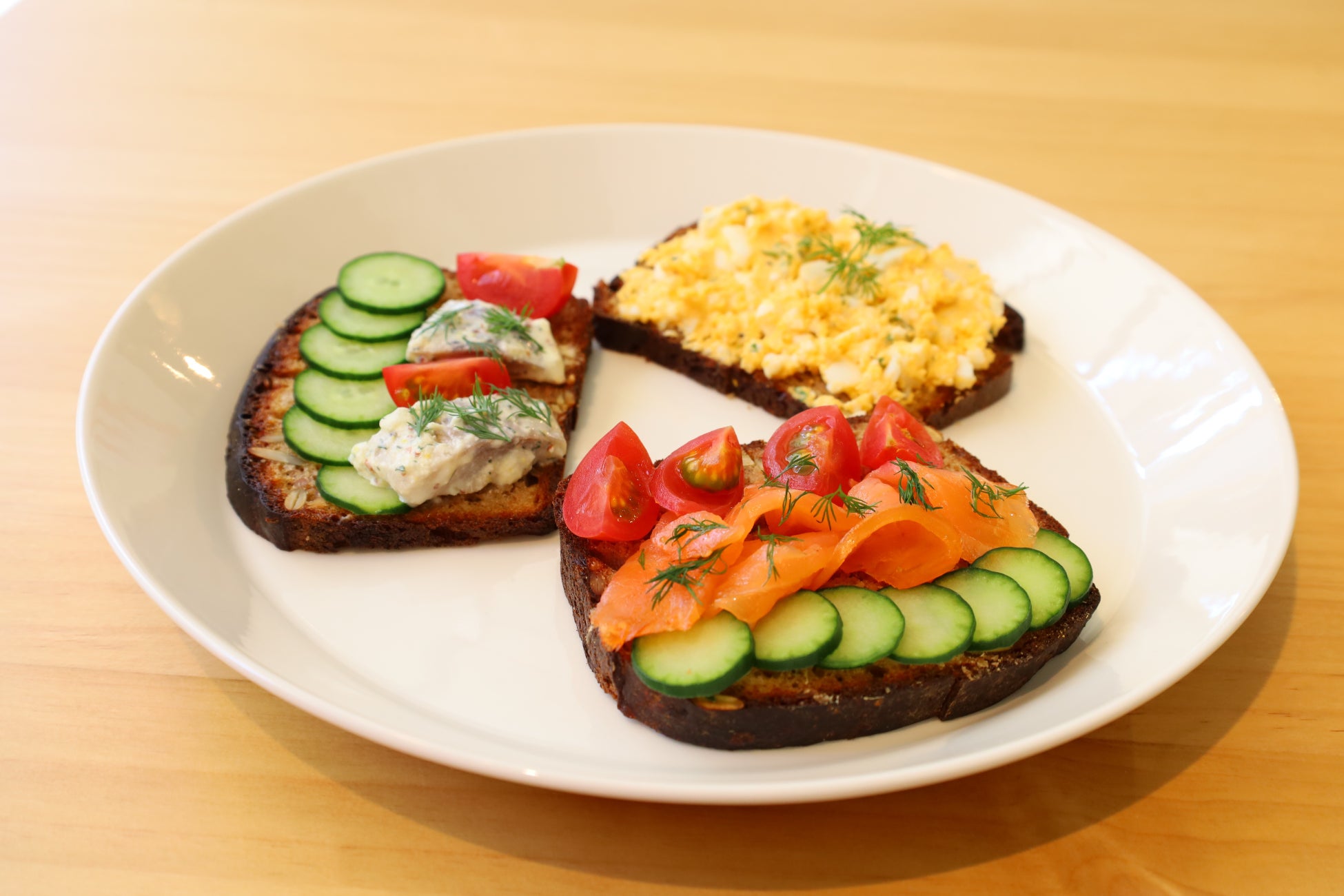 ・黒パン(ライ麦パン)のオープンサンド 1種(single)¥500/ 3種(triple)¥1,300