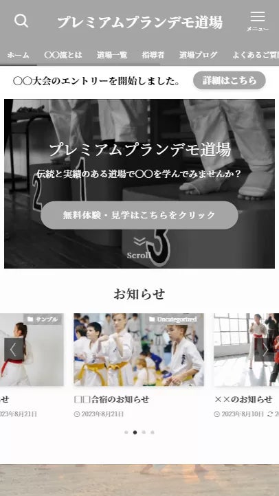 また、多くの道場のホームページがレスポンシブ対応されていない一昔前のデザインだったり、長期間、更新されずに放置されている現状があります。そのような状況を改善し、全国の道場長の支援を行うためにWEB道場をスタートしました。