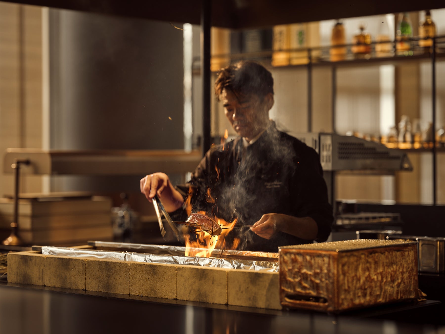 東京タワーを間近に望む、ジャヌ東京別棟の3階に佇む炭火焼「SUMI」では、9月10日 (火) から11月9日 (土)の期間、おまかせコース「燈 (ともしび)」にて、秋季限定メニューをご提供いたします。13品からなるコースには、「戻り鰹の藁焼き」や「合鴨炭炙りと茸煮物碗」をご用意いたしました。
