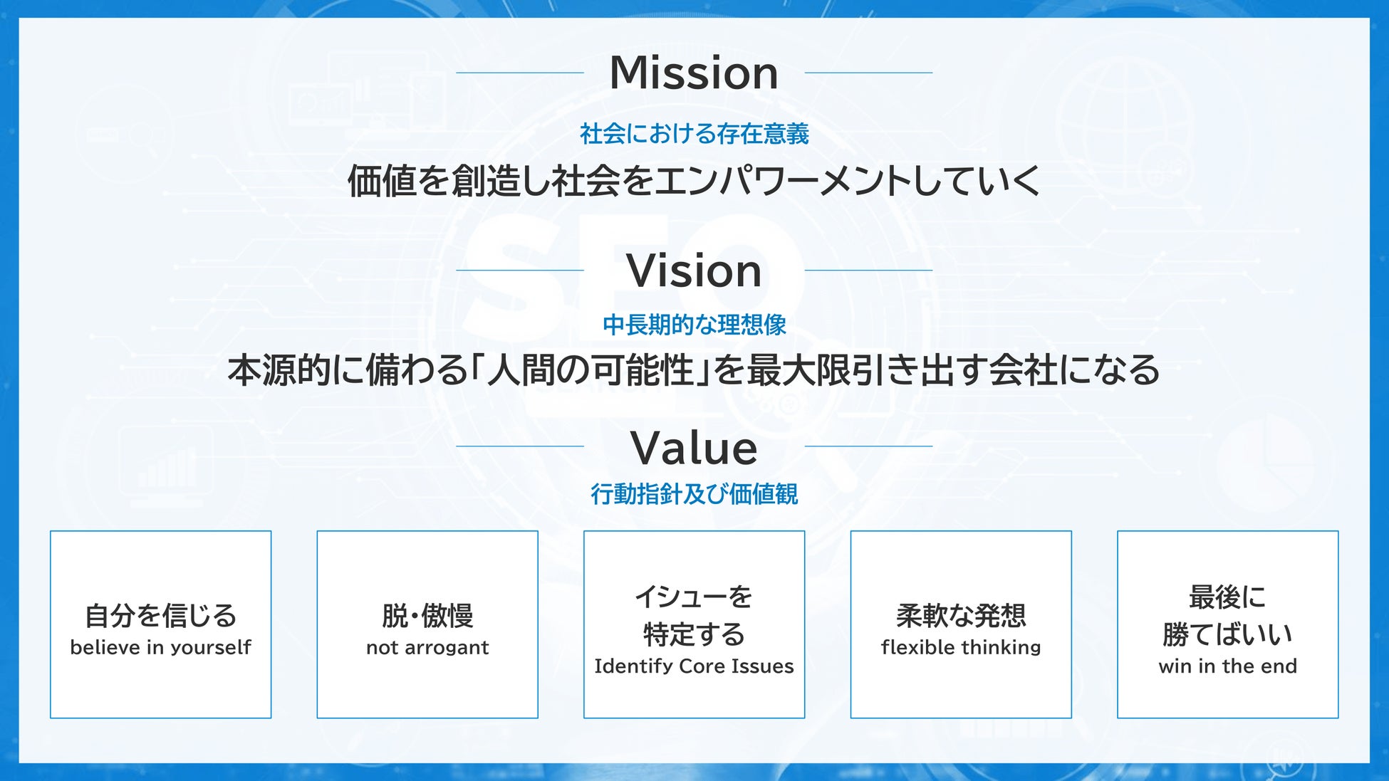 そんなことから当社は、人間の可能性を最大限引き出し、社会をエンパワーメントしていける会社を目指して日々邁進して参ります。