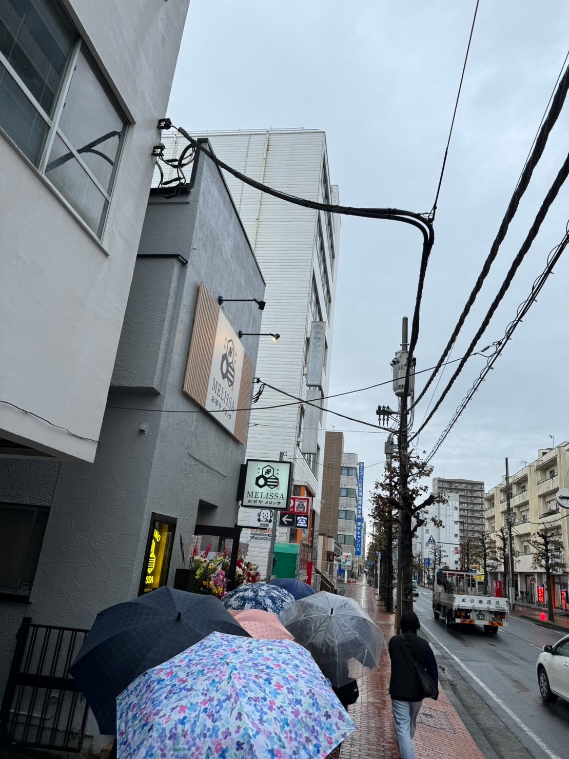 雨にもかかわらず、11:00オープン前から行列が連なっています。