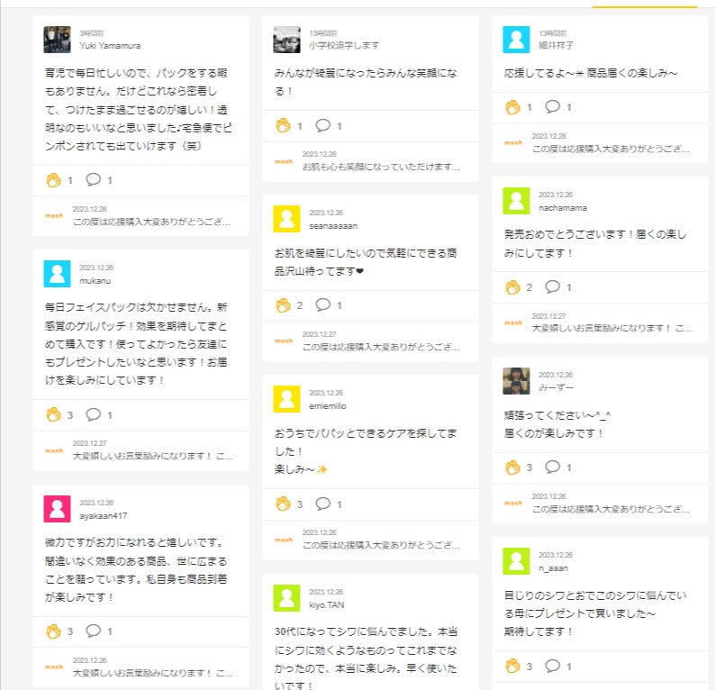 - たくさんの応援コメントもいただいております