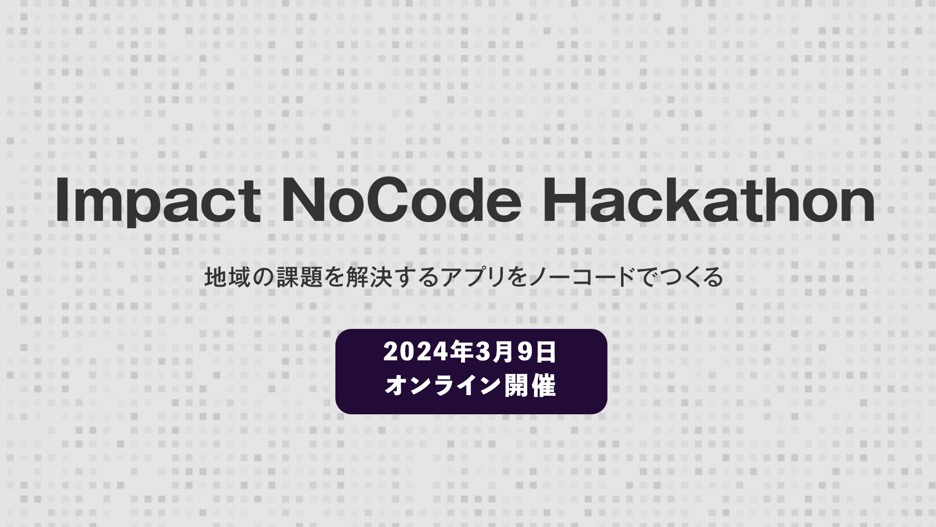 Impact NoCode Hackathon 特設サイト:https://impact-nocode-hackathon-2024.studio.site/