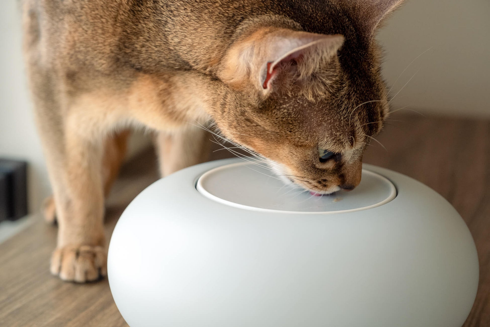 お花がない時、花瓶として楽しむ以外にも、中心の花瓶部分をひっくり返すことで、猫のお皿としても使用いただけます。猫の舌が触れるのは磁器部分となり、つるりとした感触となっています。そして、猫の首がつらくないように、約8cmの高さを出しました。