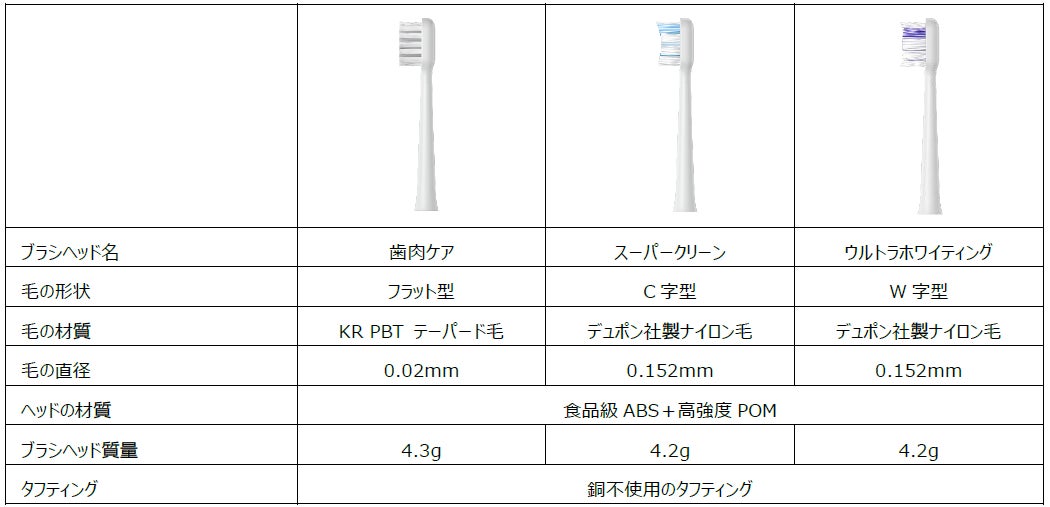 6セットブラシヘッド 3種 :各3,000円(メーカー希望小売価格・税込)※4