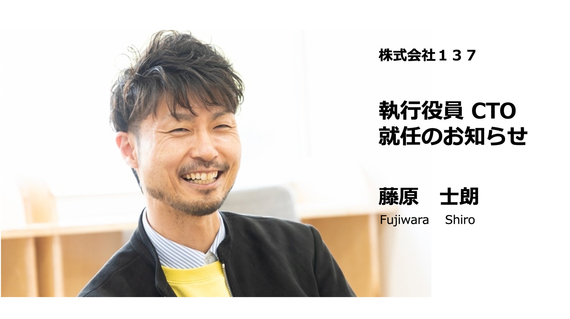 株式会社137、執行役員CTOに藤原士朗氏 就任のお知らせ
