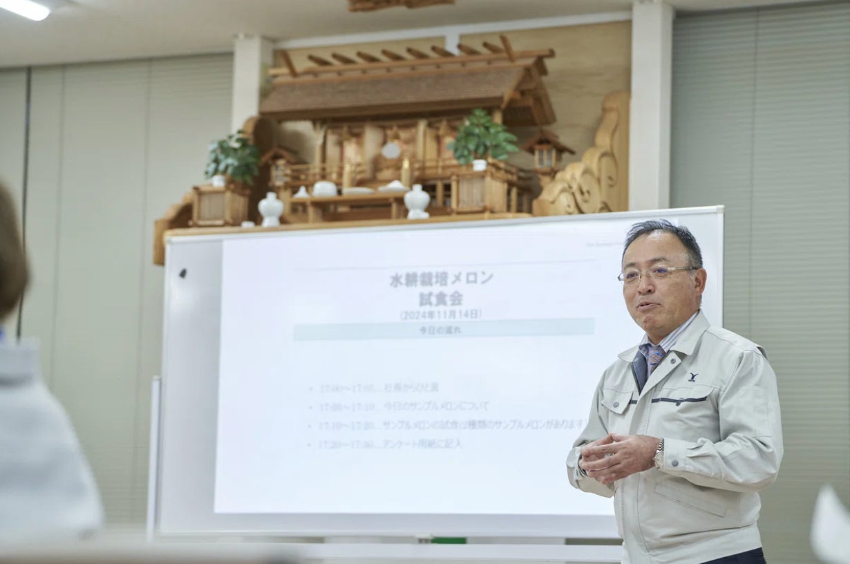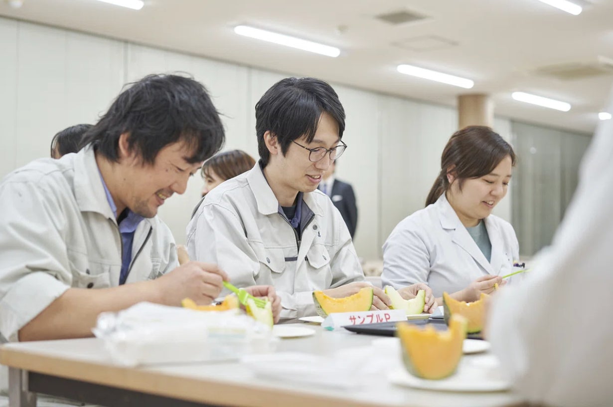 試食会では、水耕栽培メロン2品種を食べ比べてもらい、アンケートを記入してもらい終了しました。社内の方に本プロジェクトのことを知ってもらう機会にもなり、これまでにないフィードバックも得られ、有意義な会となりました。参加いただいた社員からのアンケートには、「メロンは美味しかったが、今度どうしていくかですよね」という意見や、今回の試食会について、「社員として協力できることは、協力したいと思いました。」という声もいただいたので、今後の水耕栽培メロン事業に役立てていきたいと思います。まだ発展途上にあるメロンの水耕栽培に製造業ならではの視点で新たな価値を創造し、農業の生産性向上と担い手不足の解消に貢献することを目指します。