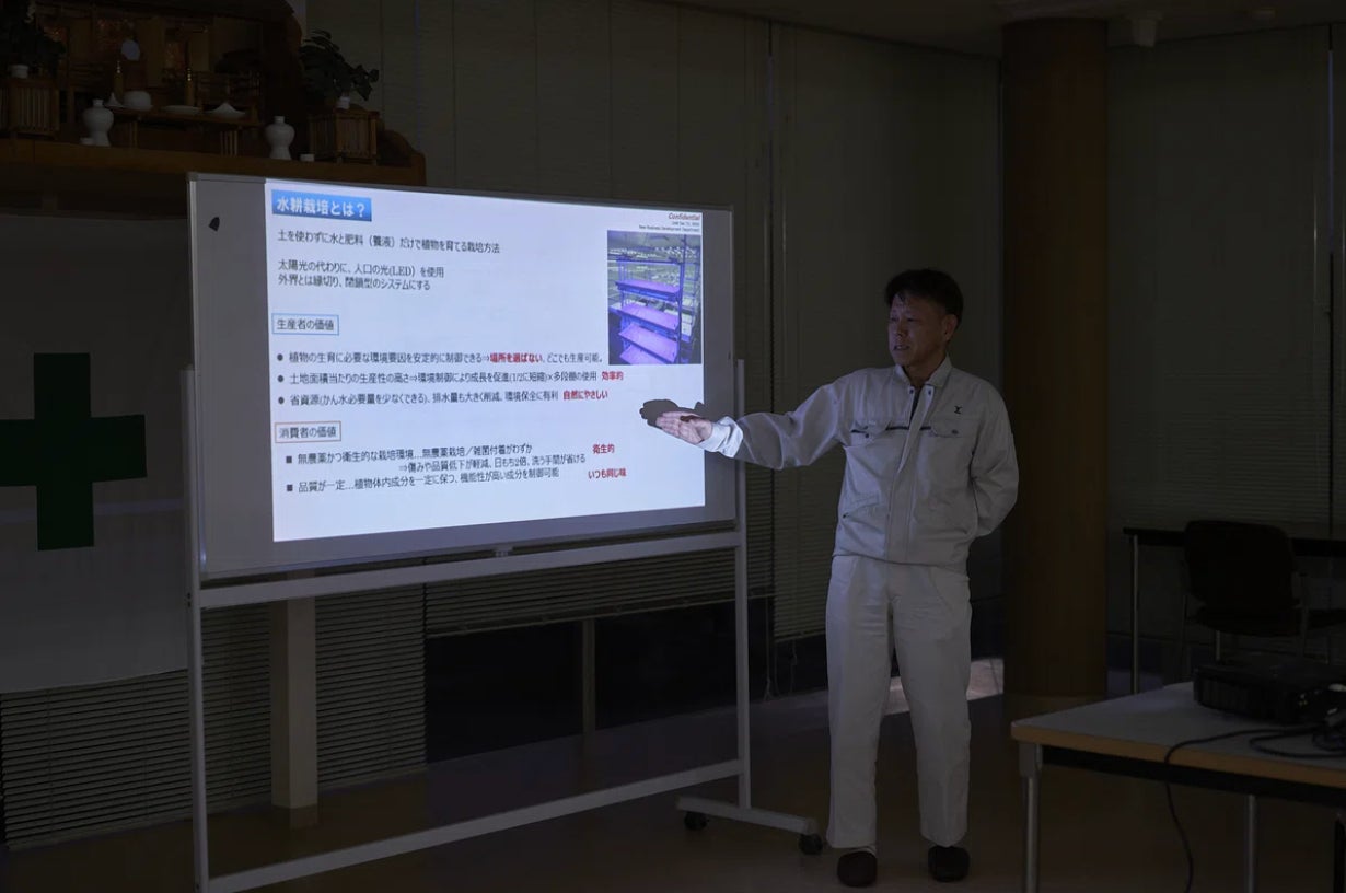 ”食料問題”、”食の安全”の社会課題への貢献。手段は、完全閉鎖型の制御された環境による水耕栽培法での果物・野菜作り。工業製品で培った、同じものを同じ品質で作る品質管理技術を応用し、高付加価値の果物・野菜の栽培を中心とした事業を目指す。