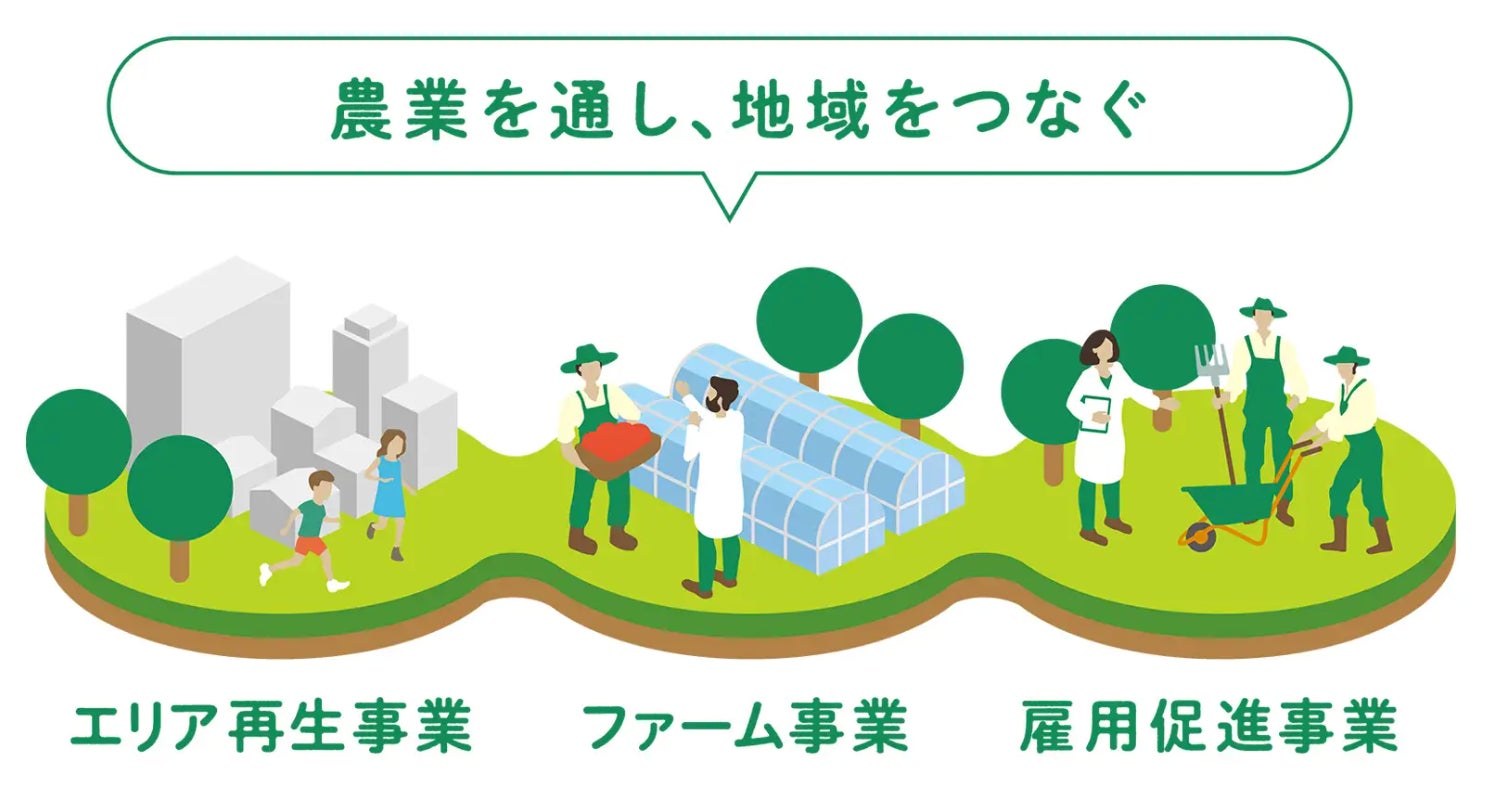 ファーム事業およびエリア再生事業就労による、持続可能型雇用の創出。
