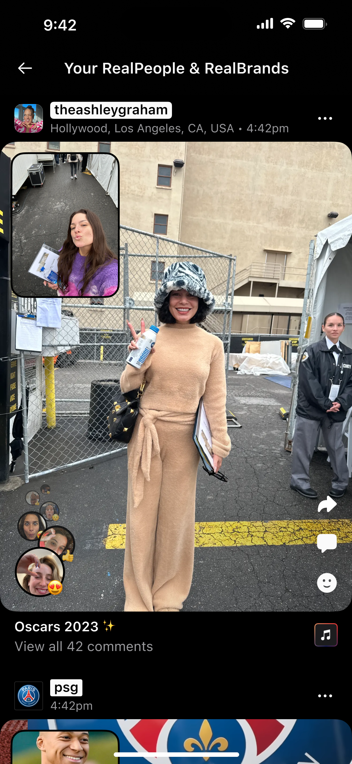「BeReal」の公式アカウント機能「RealPeople and RealBrands」に著名アーティスト、モデル、アスリート、ブランド、スポーツチーム、大学まで、様々な公式アカウントが続々開設!
