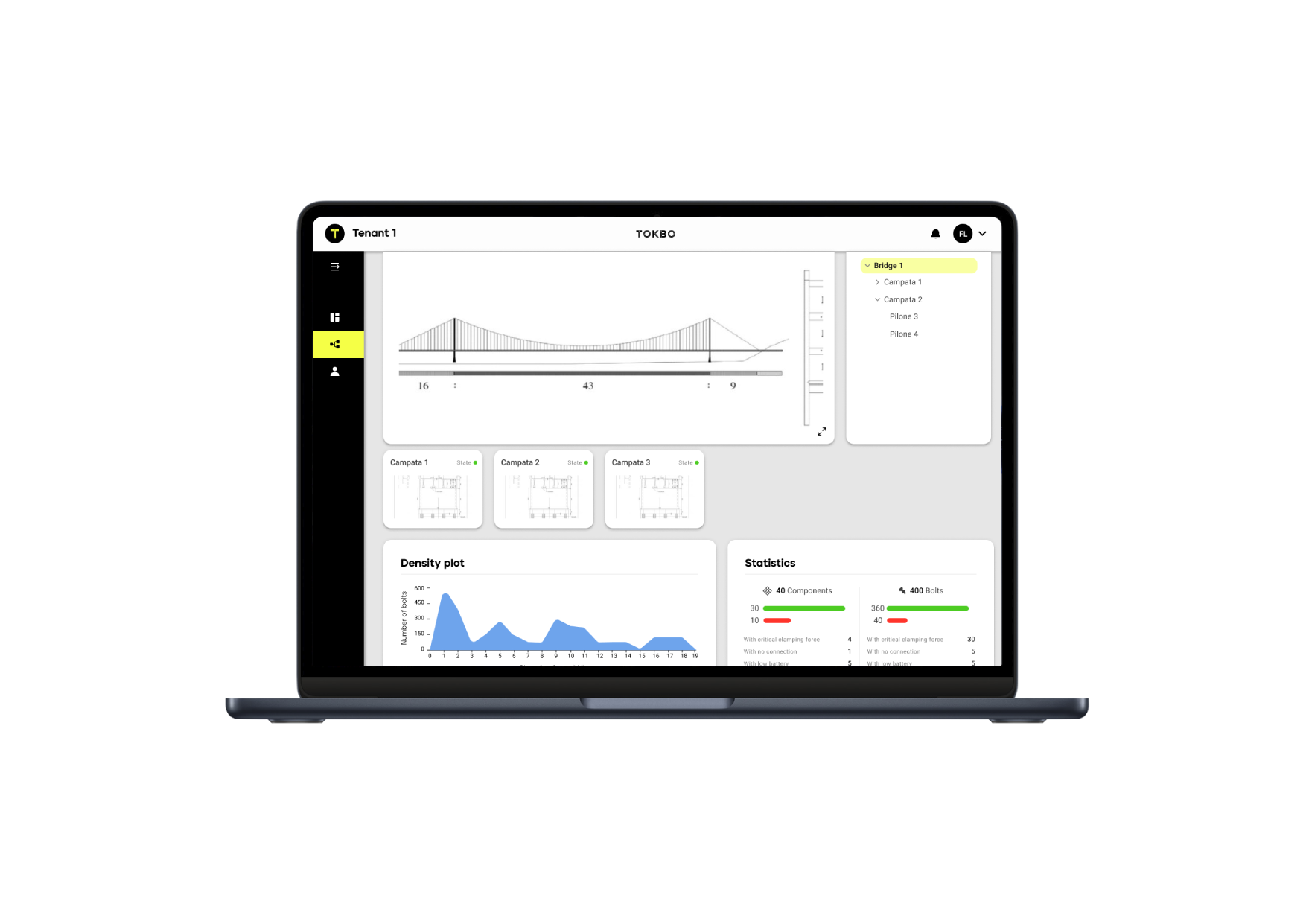 トクボは、ボルト接続の健康状態を監視し、リモートでの予測メンテナンスを可能にするセンサーシステムを開発する企業です。このソリューションは、留め金具やその他のコンポーネントのセンシングから始まり、鉄橋や各インフラの構造上のニーズや重要性に合わせた監視システムを提供します。 トクボは、センサーとの継続的かつリアルタイムの接続を通じて、設置されている構造物の健康状態に関するデータを収集および分析し、構造物自体の予知保全と安全性をサポートおよび最適化します。