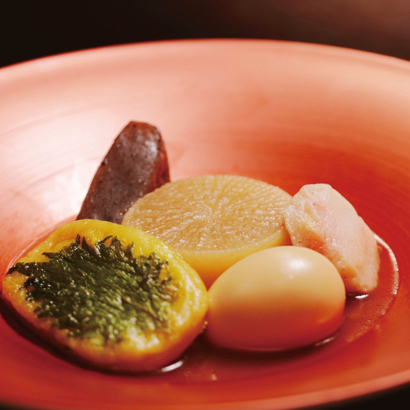名産地・小田原の練り物や神戸の牛すじを煮込んだ特製小田原おでん。それぞれの具材にしっかり味を染み込ませ、ほっとする味わいに仕上がっています。