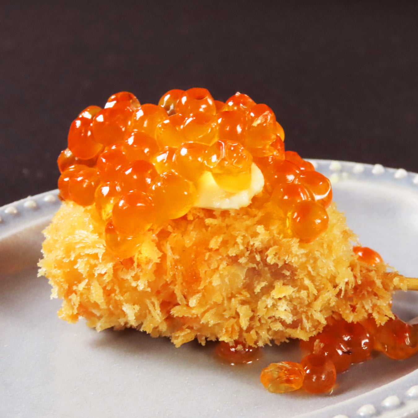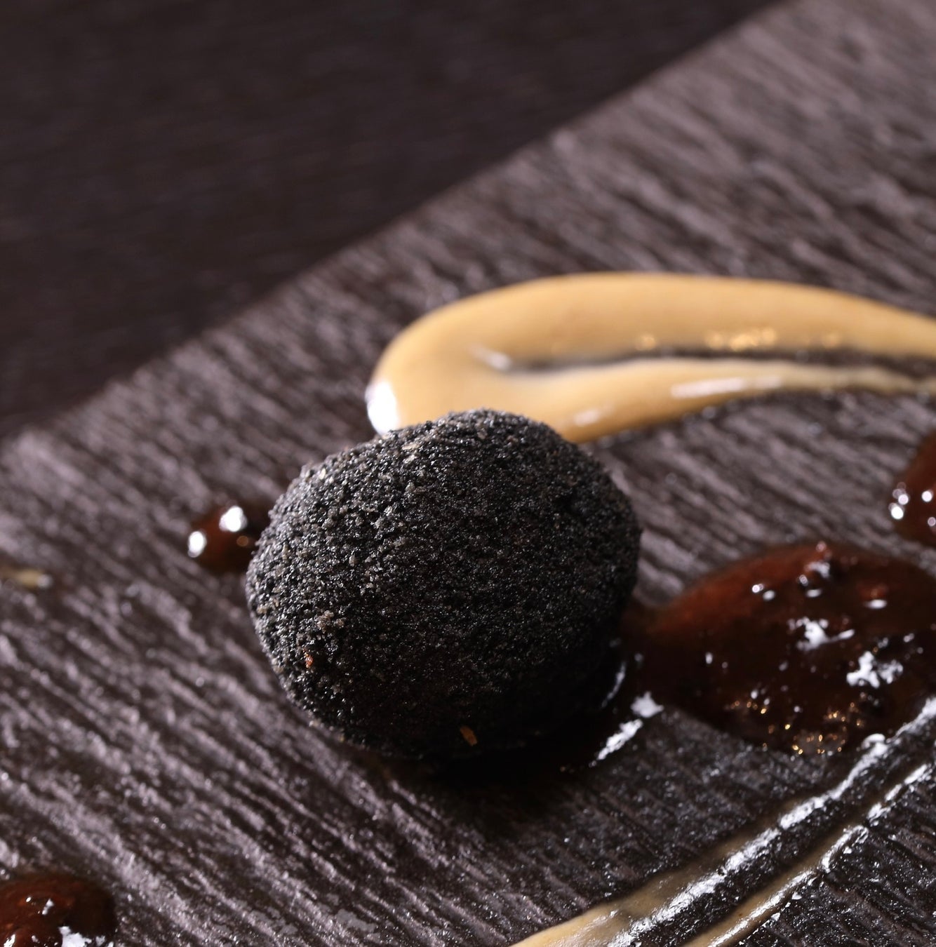 定番ネタを筆頭に、イタリアンやフレンチの要素も取り入れた変わり種をご用意。特に人気の変わり種が「黒トリュフコロッケ」。トリュフそのものに似せ、特製ポルチーニソースとトリュフソースと一緒にお召し上がりいただきます。その他、「麻婆豆腐」「干し芋~レーズンバター~」など、他にはない変わり種をご用意しています。