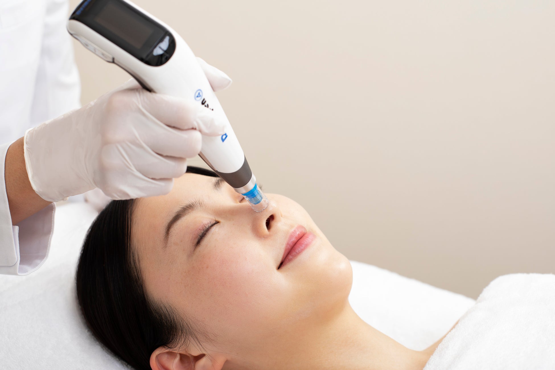 エイジング症状が現れ始める30代は、肌のハリや弾力にアプローチする治療がおすすめです。創傷治癒作用により皮膚を再生させる「ダーマペン4」と、肌の奥からハリやツヤをもたらすピーリング剤「マッサージピール」を組み合わせる『ヴェルベットスキン』は、毛穴を目立たせる様々な要因(毛穴の開き、メラニンによる黒ずみ、キメの乱れによる毛穴目立ちなど)にアプローチすることに加えて、肌のハリ感・ツヤ感がアップすることで毛穴レスのような肌印象に近づける人気の毛穴治療です。