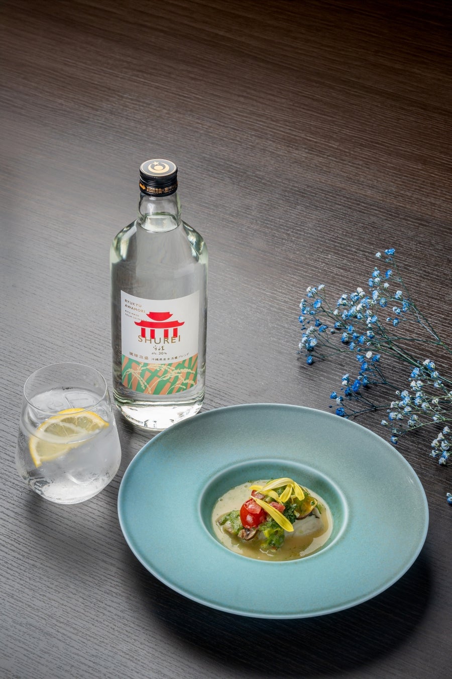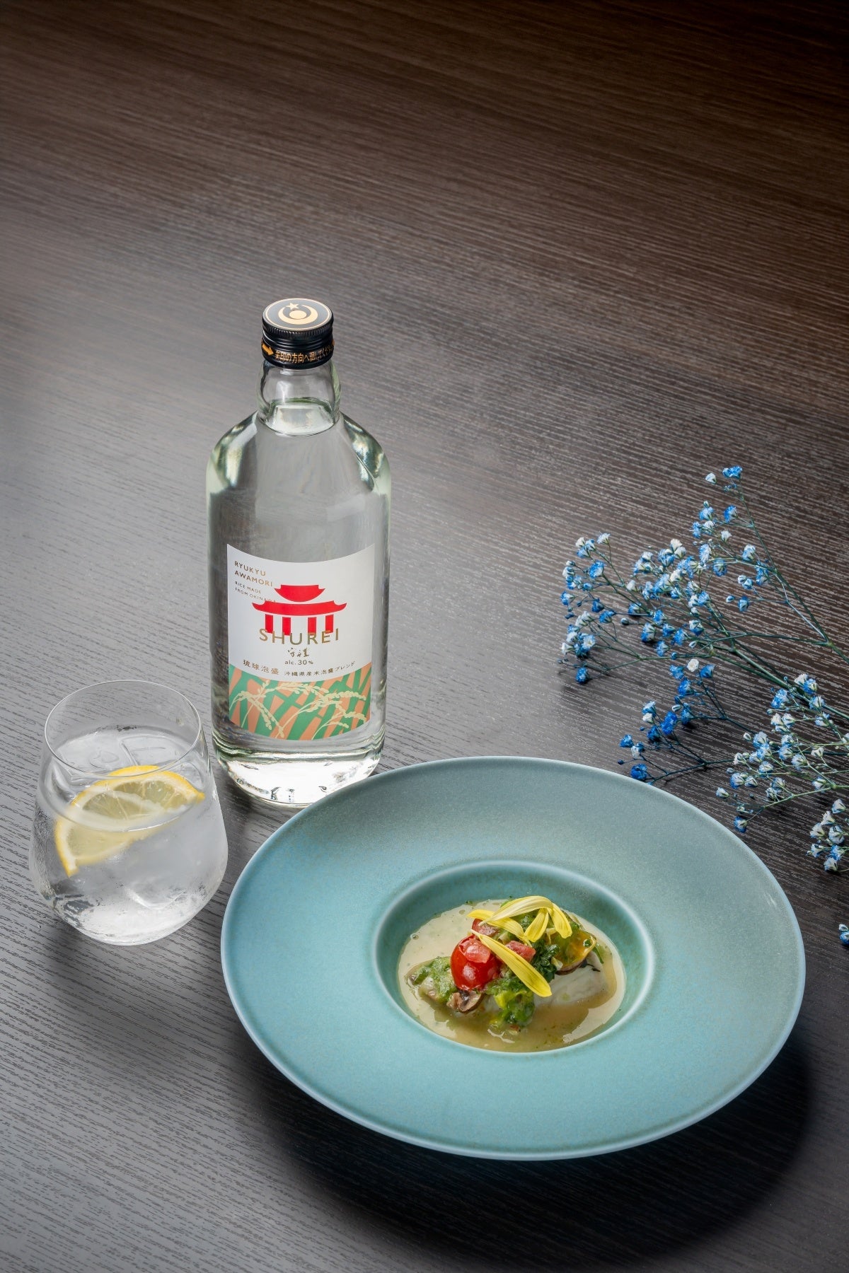 ・魚料理 × 守禮30度(水割り):繊細な魚料理の味わいを引き立てるよう、「守禮30度」を洗練されたバランスの水割りで提供します。沖縄の日常で愛飲され、食事に寄り添う泡盛の魅力を伝え、お米で造られた蒸留酒の優しい味わいを堪能していただきます。