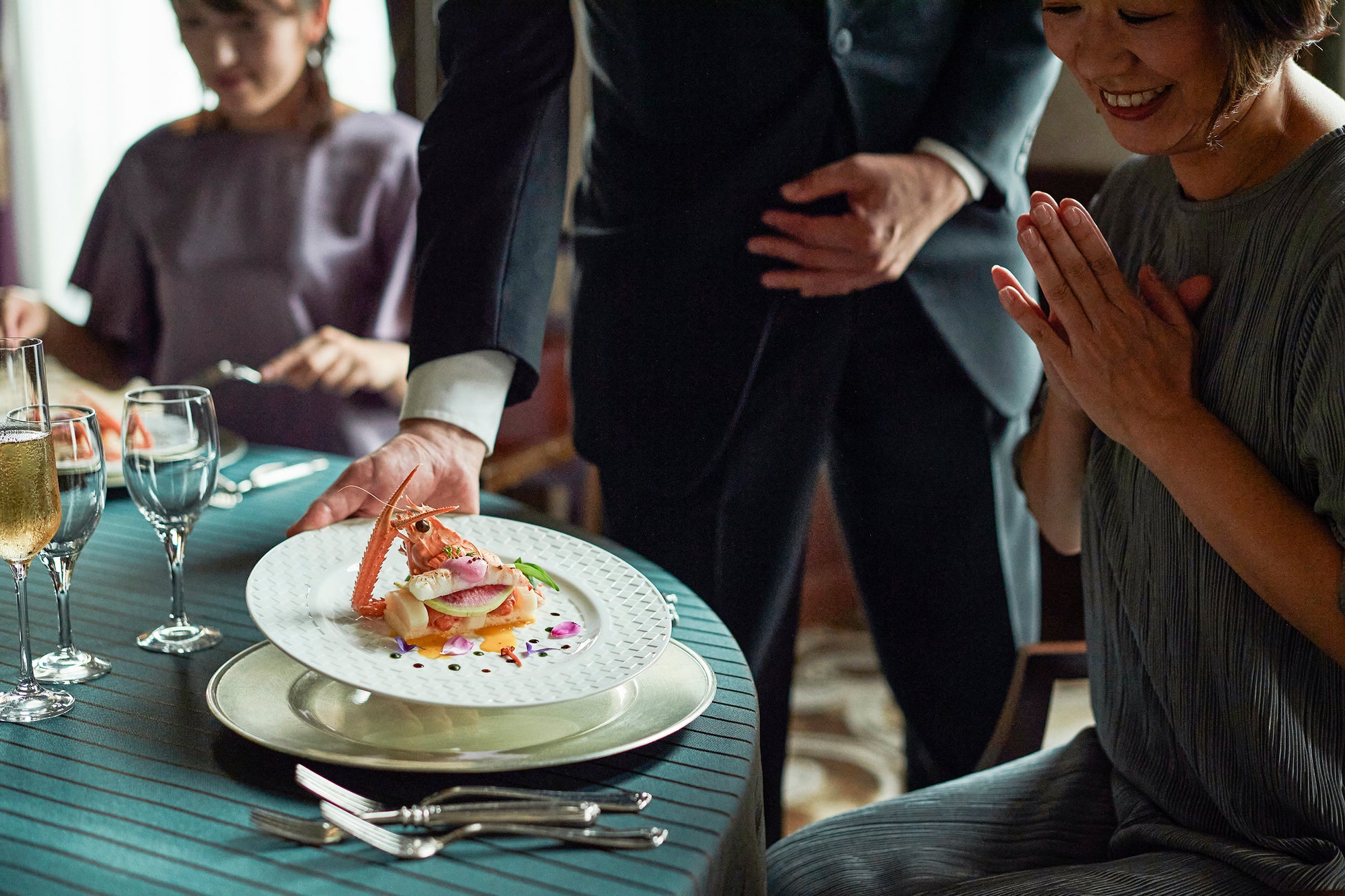 披露宴のコース料理から始まり、アフターパーティー、翌日の朝食まで続く90周年の特別なフルコースをご堪能ください。