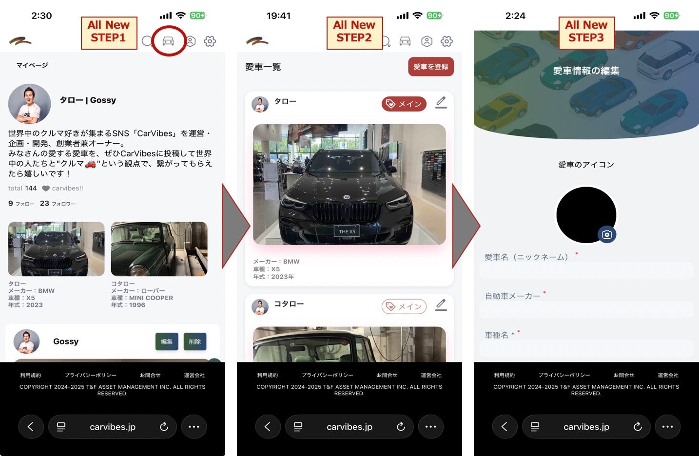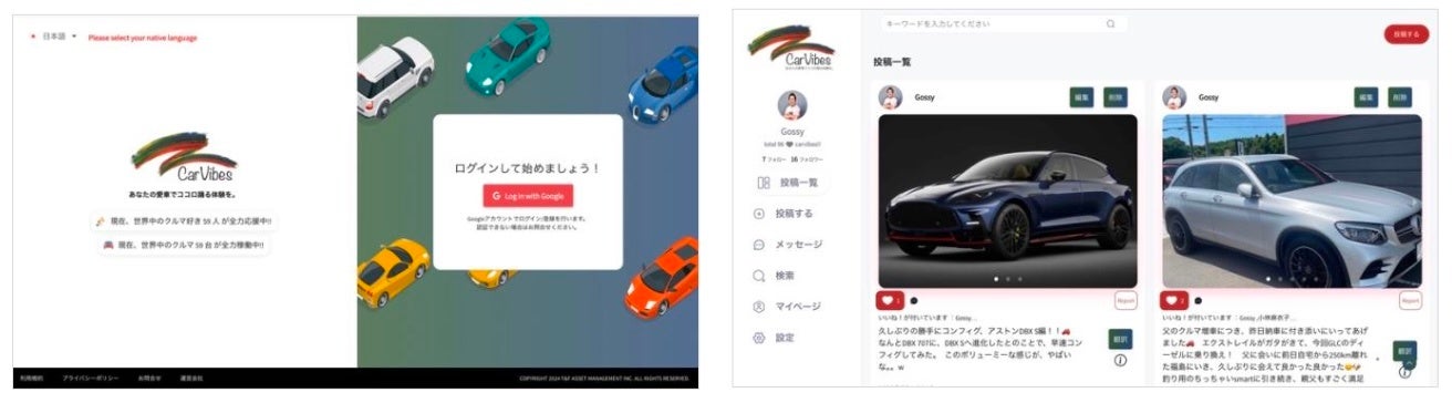 この度T&Fアセットマネジメント株式会社 (神奈川県横浜市 代表取締役兼CEO:大越隆行)は、世界中のすべてのクルマ好きに向けたSNS「CarVibes®(カーバイヴス)」が、「自分の投稿を他SNSへ自動転載できる機能」と愛車登録台数を最大10台まで登録できる「愛車登録機能」の2機能をリリースした事をお知らせ致します。