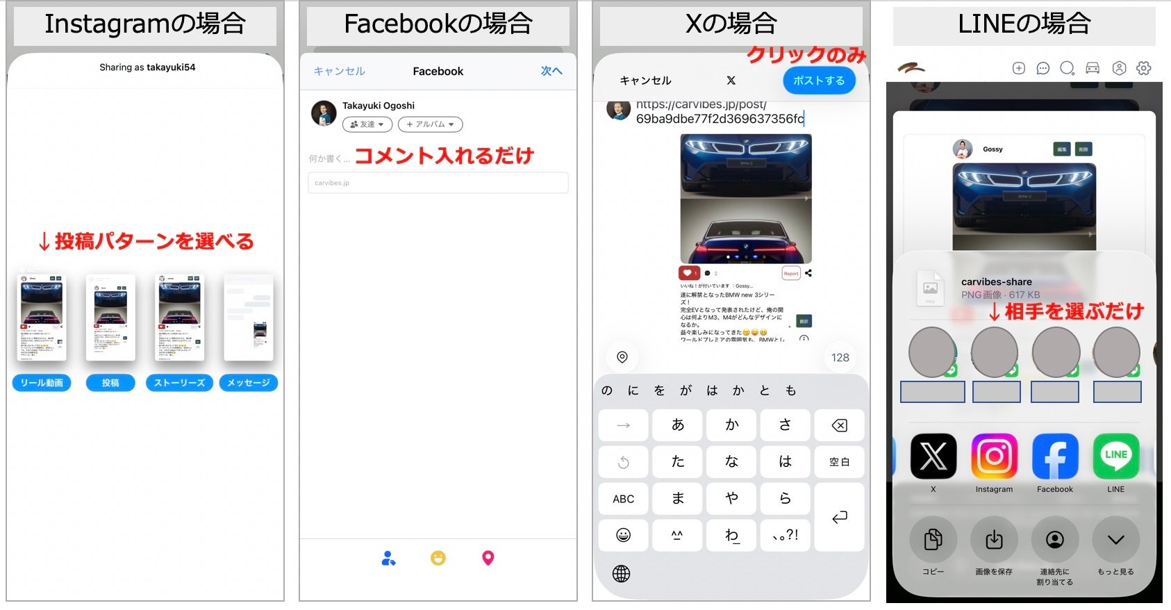 (1)CarVibes®で投稿した内容を他SNSへ転載できる自動転載機能(新機能1)