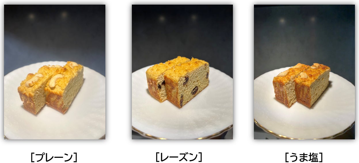 「生おから100%ケーキ」は、小麦粉や米粉などの粉物を一切使用せず、主原料を生おからと卵のみで作ったケーキとなっています。パウンドケーキとシフォンケーキのような硬さで、一切れで腹持ちも健康にも良いいいとこどりのケーキとなっています。